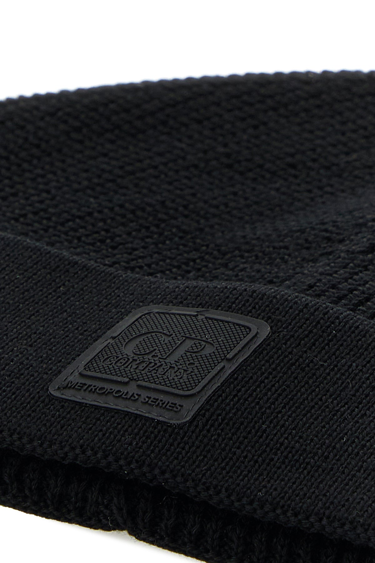 Beanie hat realized in pure cotton enriched by logoed patch at the front.