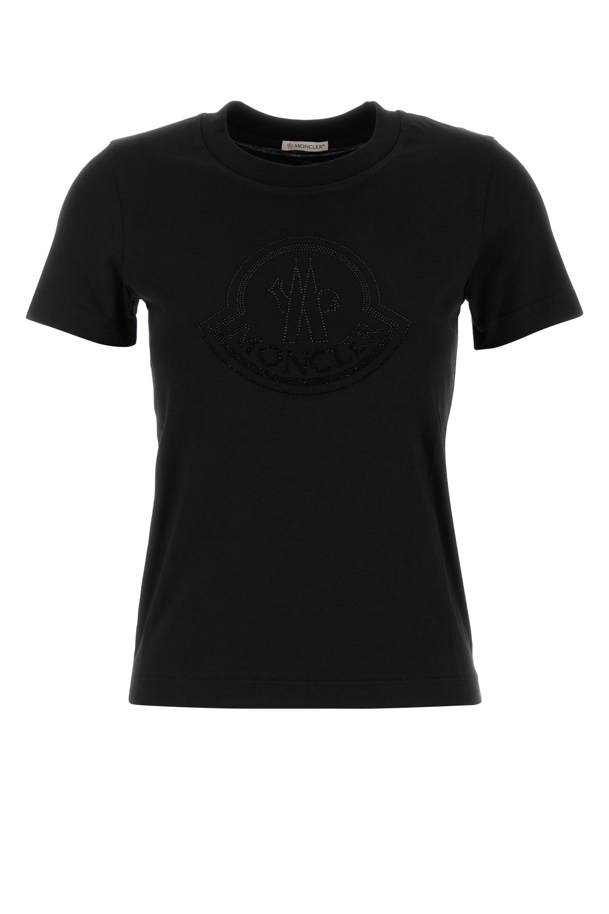 T-shirt realized in pure cotton characterized by rhinestones logo at the front.
