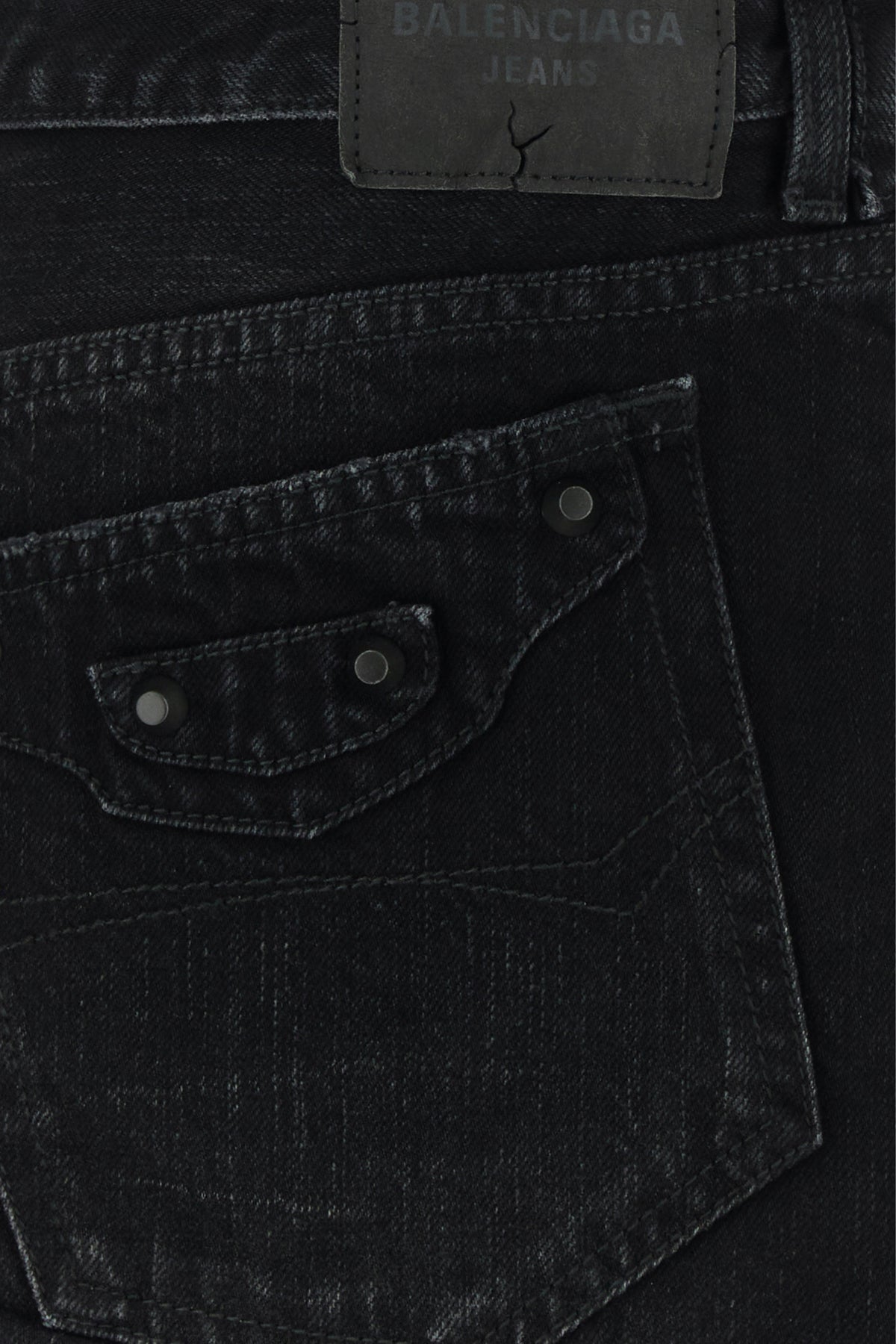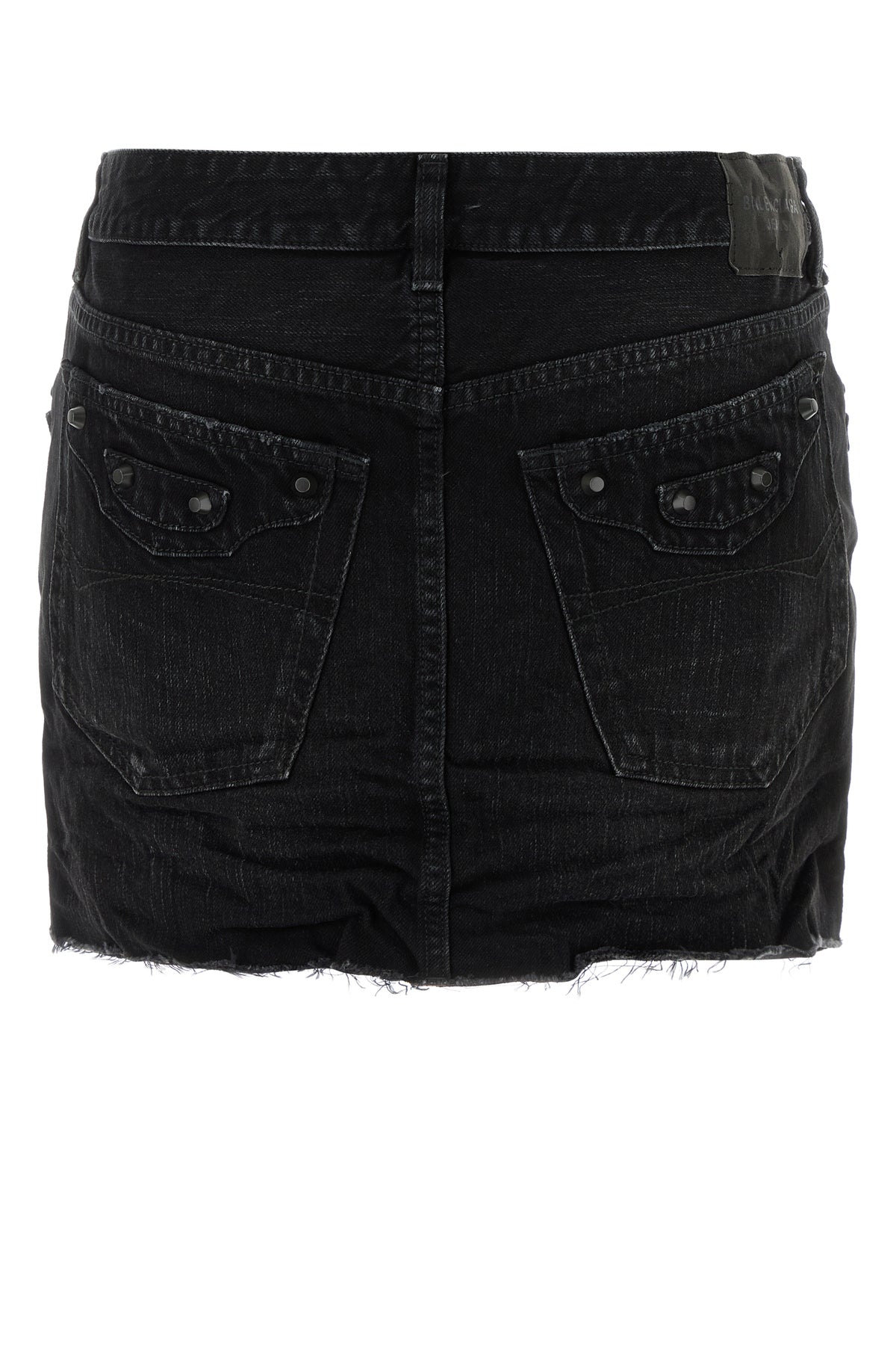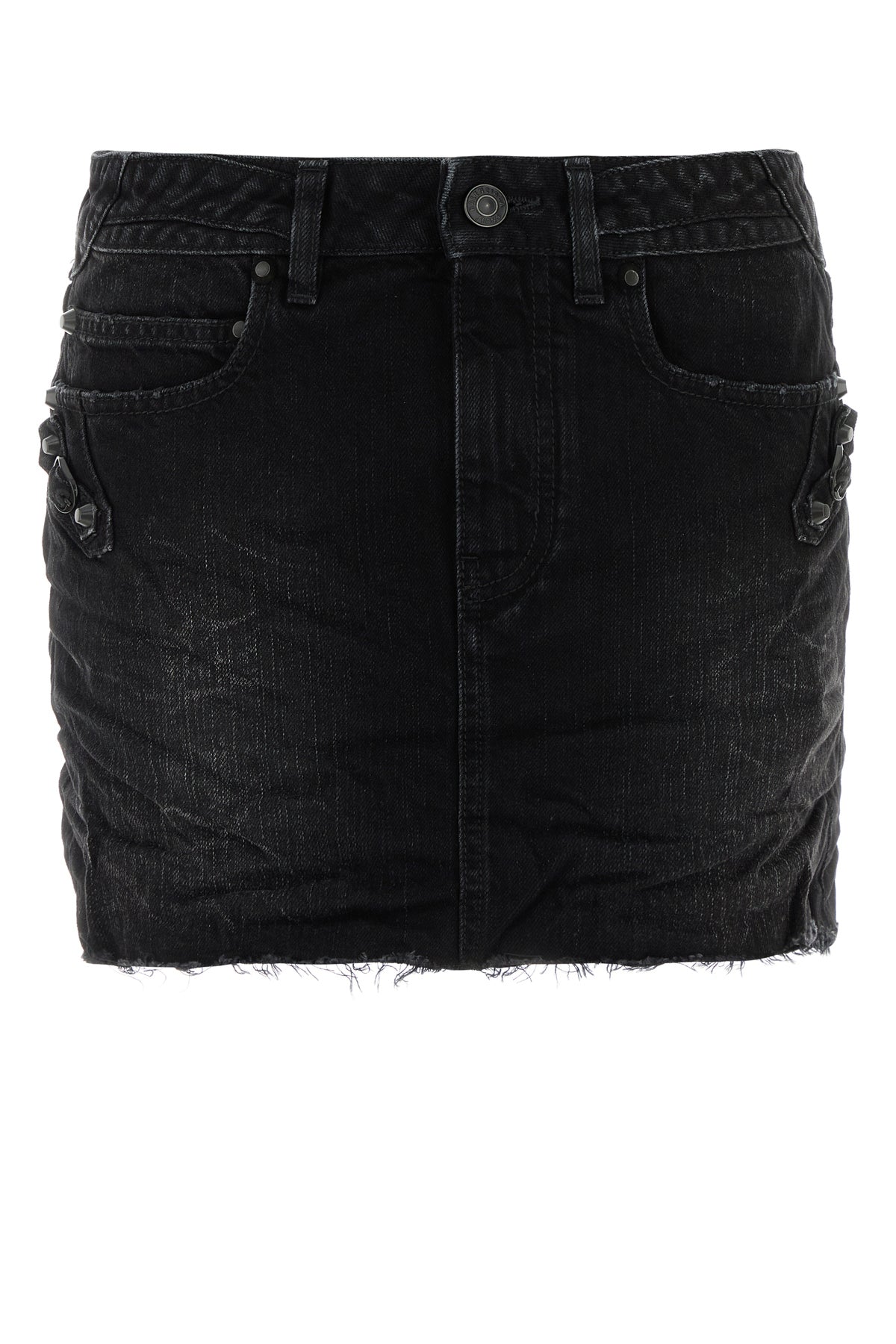 Mini skirt realized in stonewashed and distressed pure cotton denim enriched by metal studs at the front and at the back.