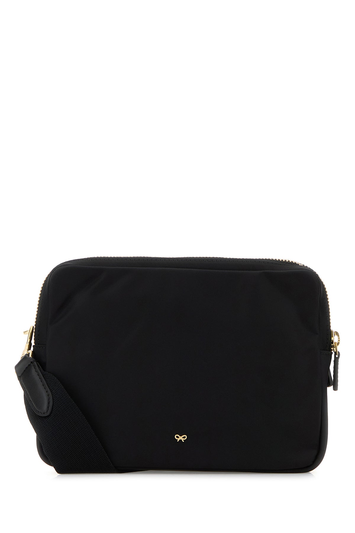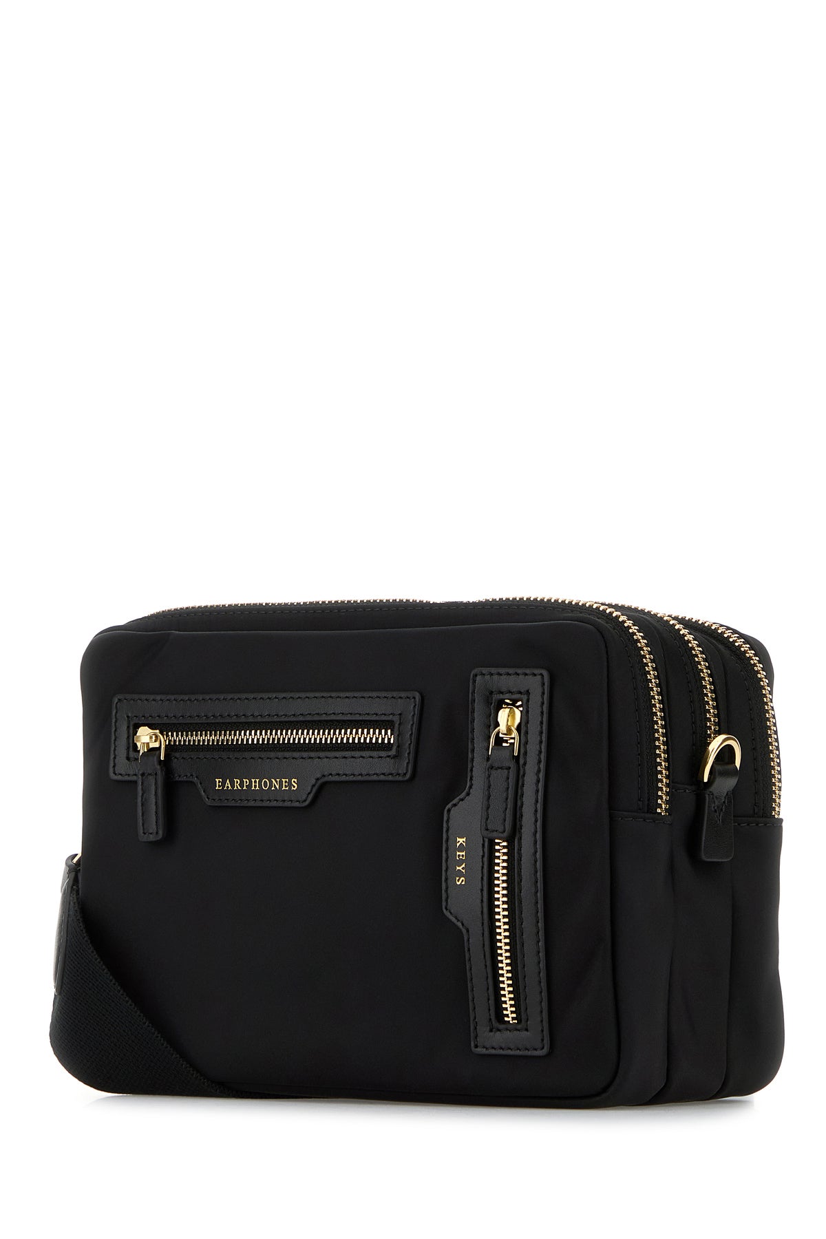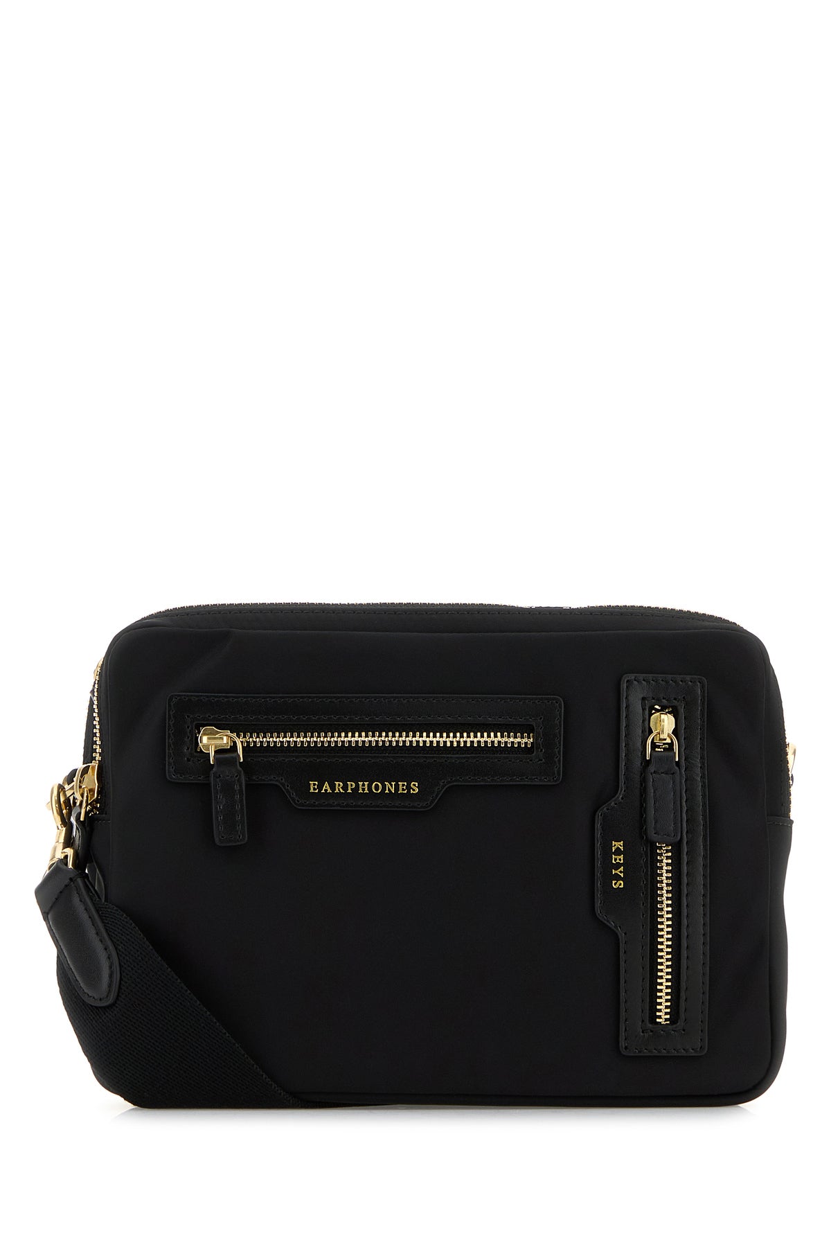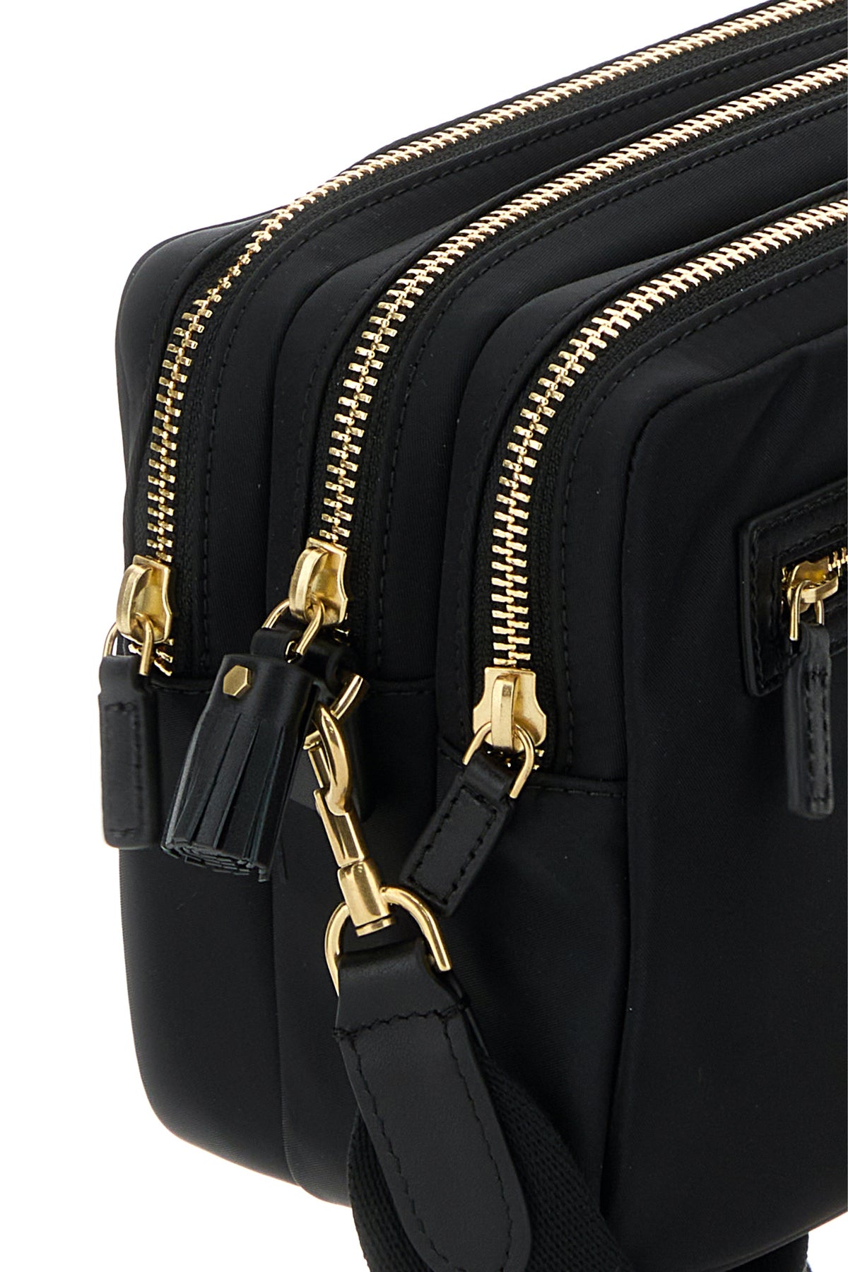 Crossbody bag realized in ECONYL® with leather trimmings characterized by Earphones print and Keys print at the front enriched by Bow detail at the back.