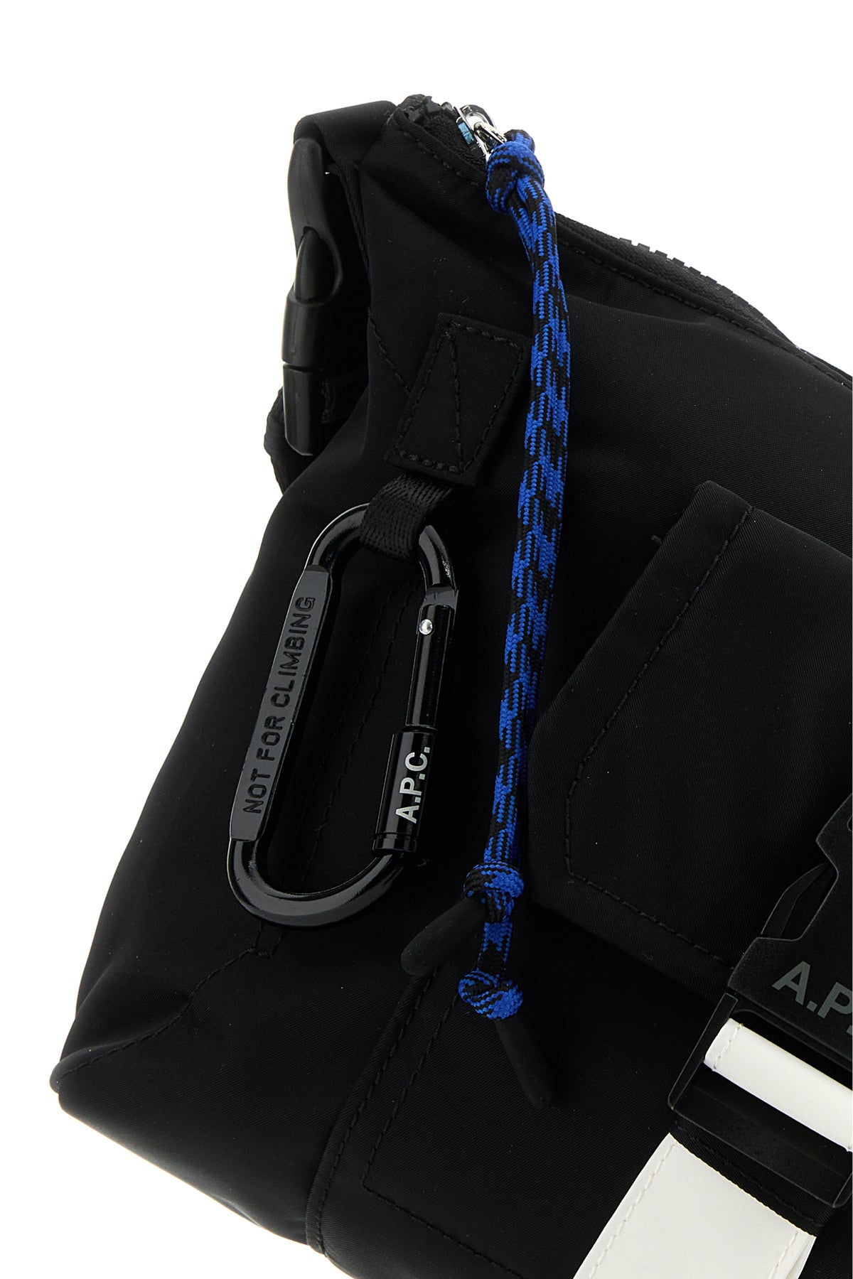 Crossbody bag realized in fabric characterized by printed logo at the front enriched by contrasting logoed label at the back.