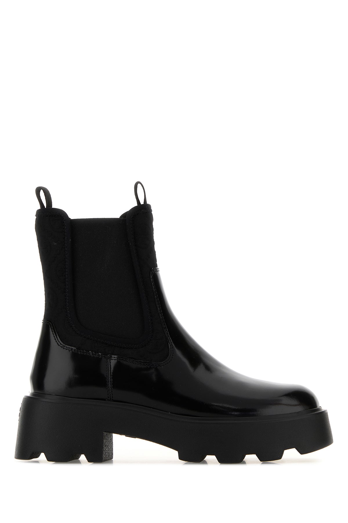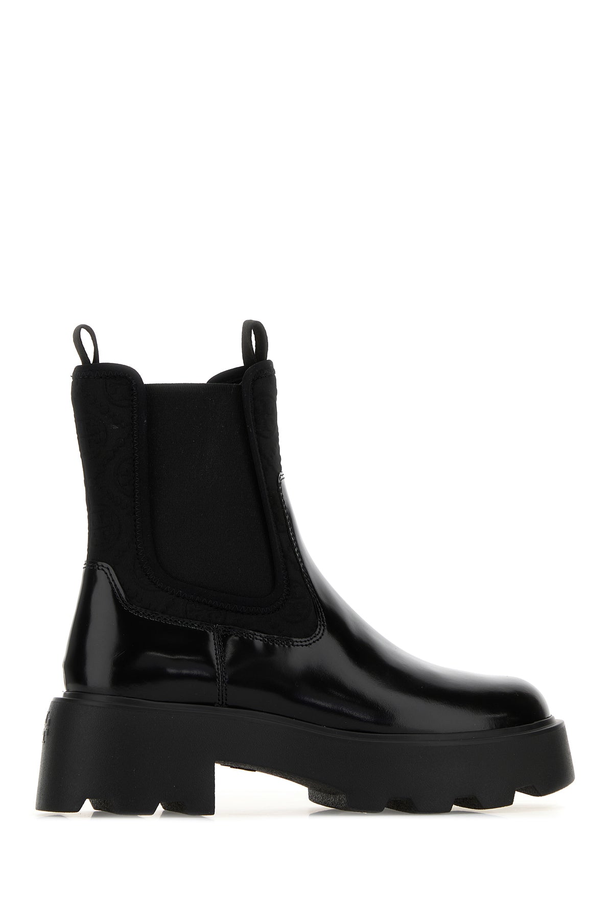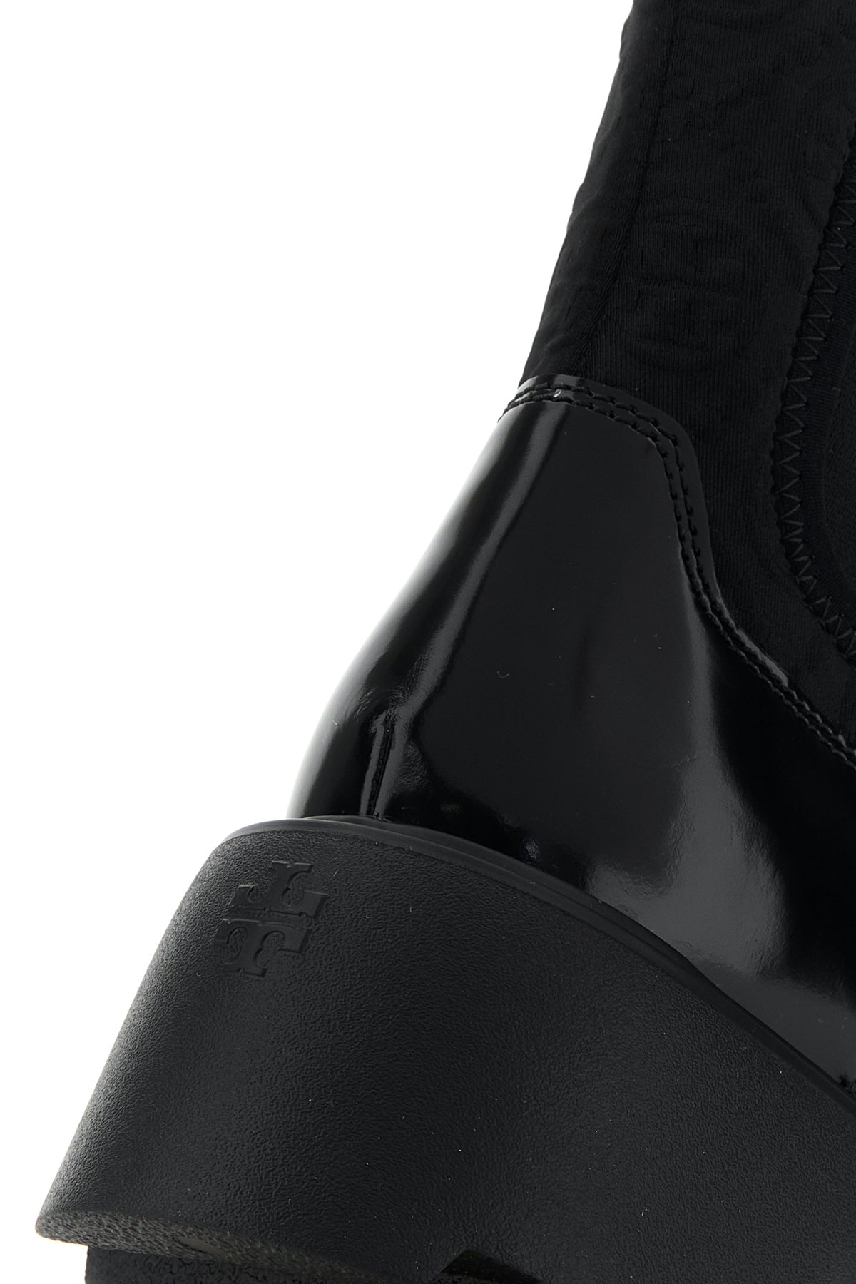 Ankle boots realized in smooth leather and fabric characterized by T Monogram motif in relief at the top.