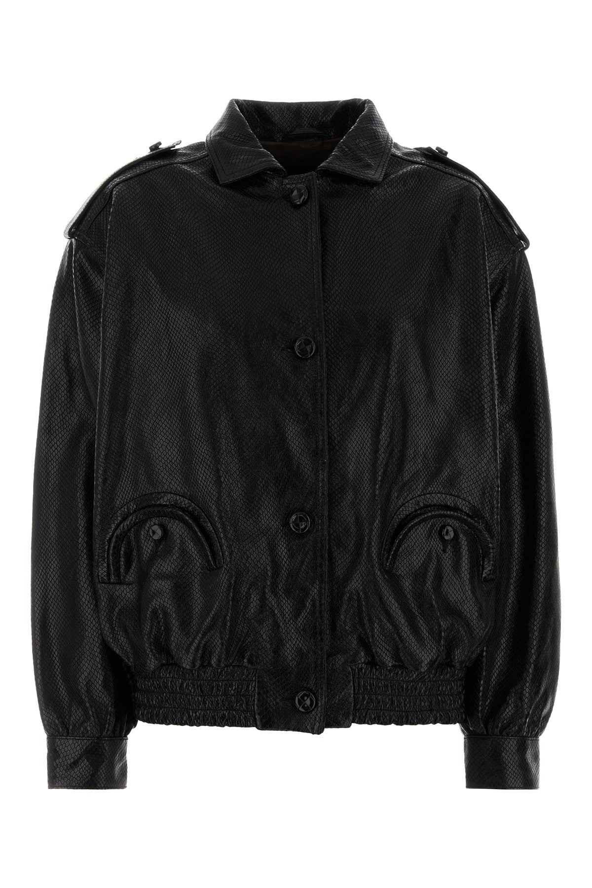 Blazer realized in reptile motif embossed leather characterized by two slit pockets at the front.