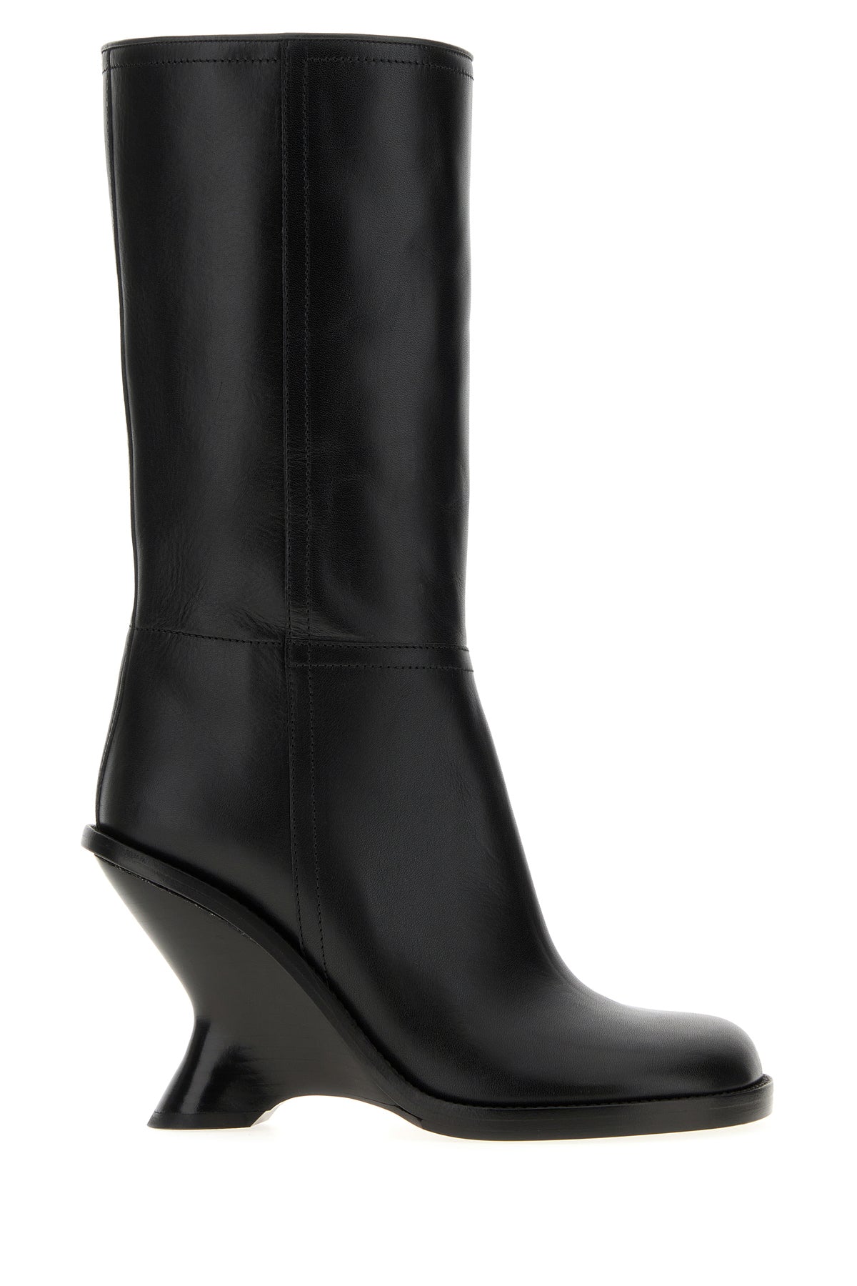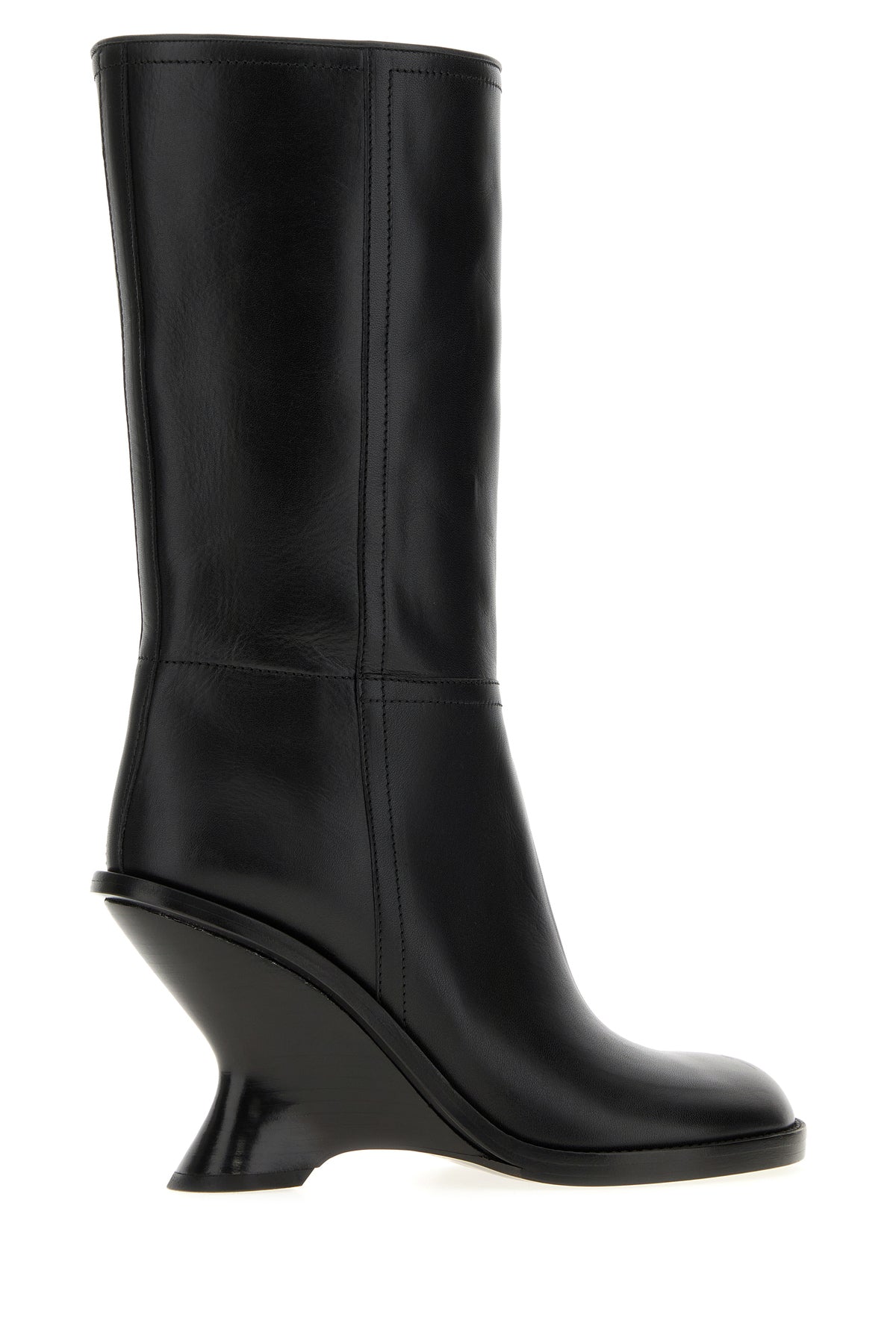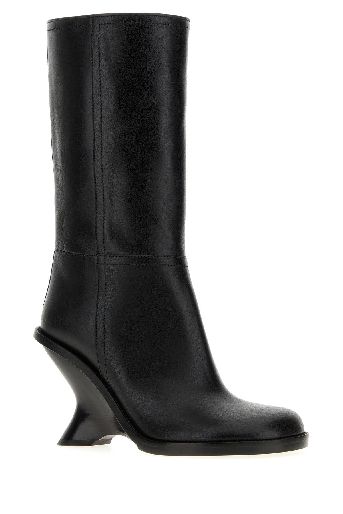 Boots realized in smooth calf leather characterized by peculiar heel.