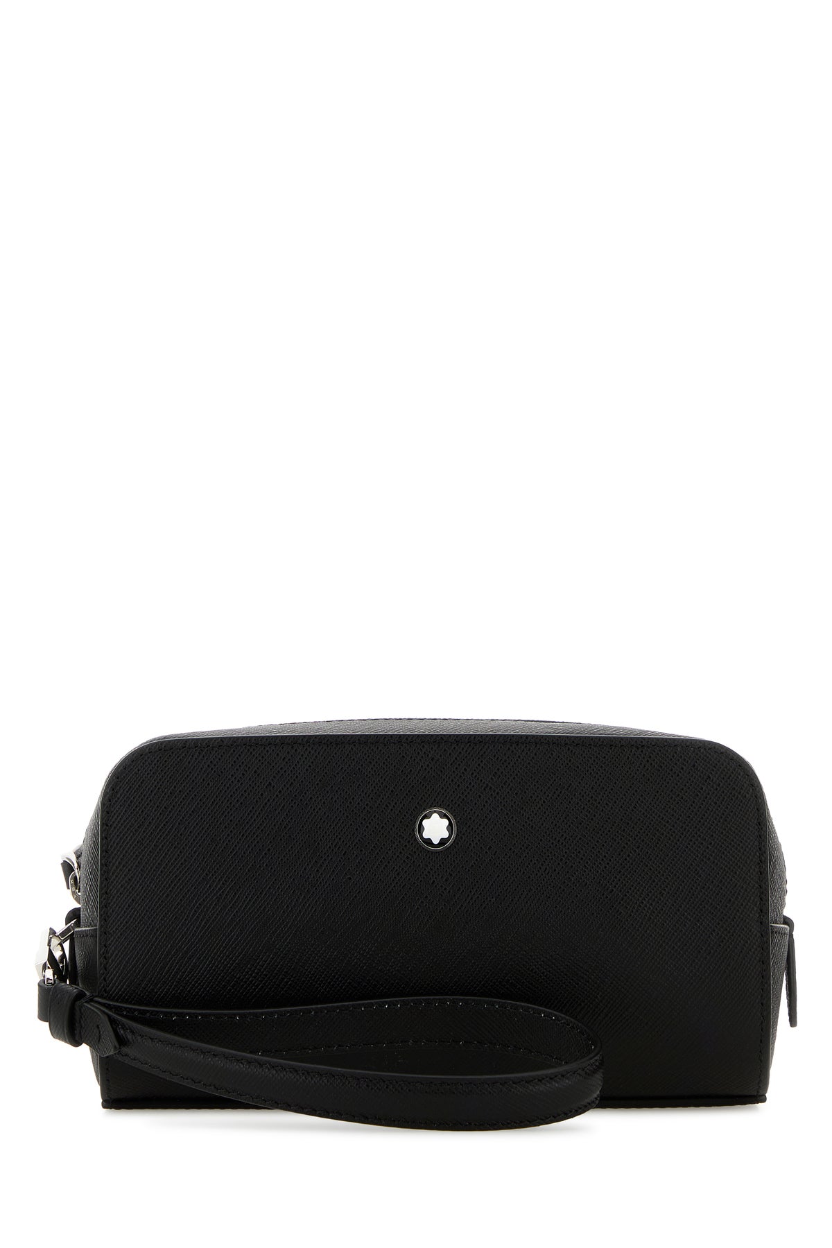 Clutch realized in grained leather enriched by Enameled Logo metal detail at the front.