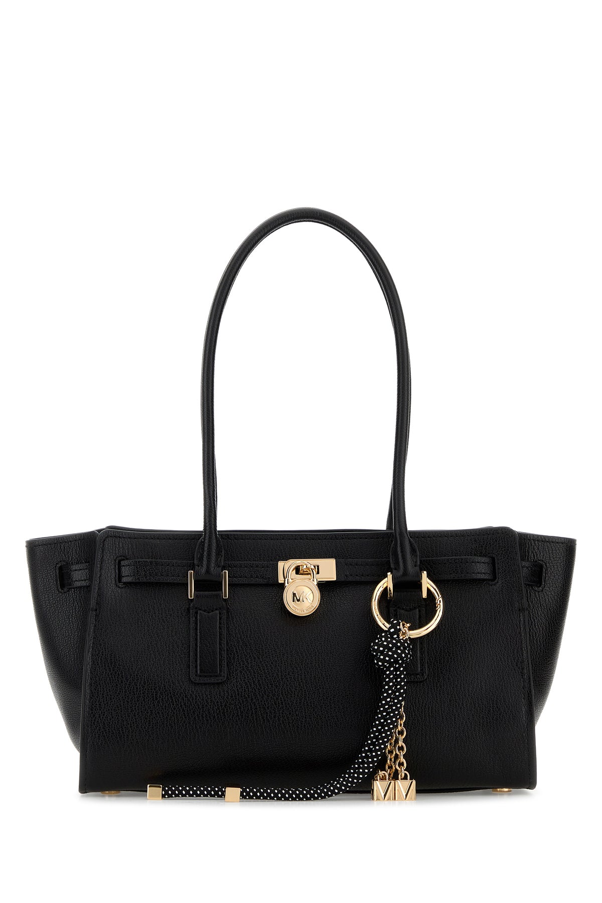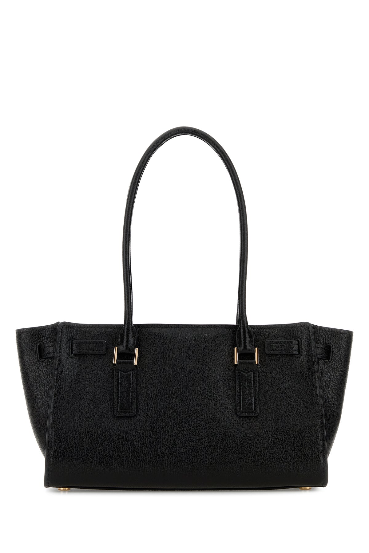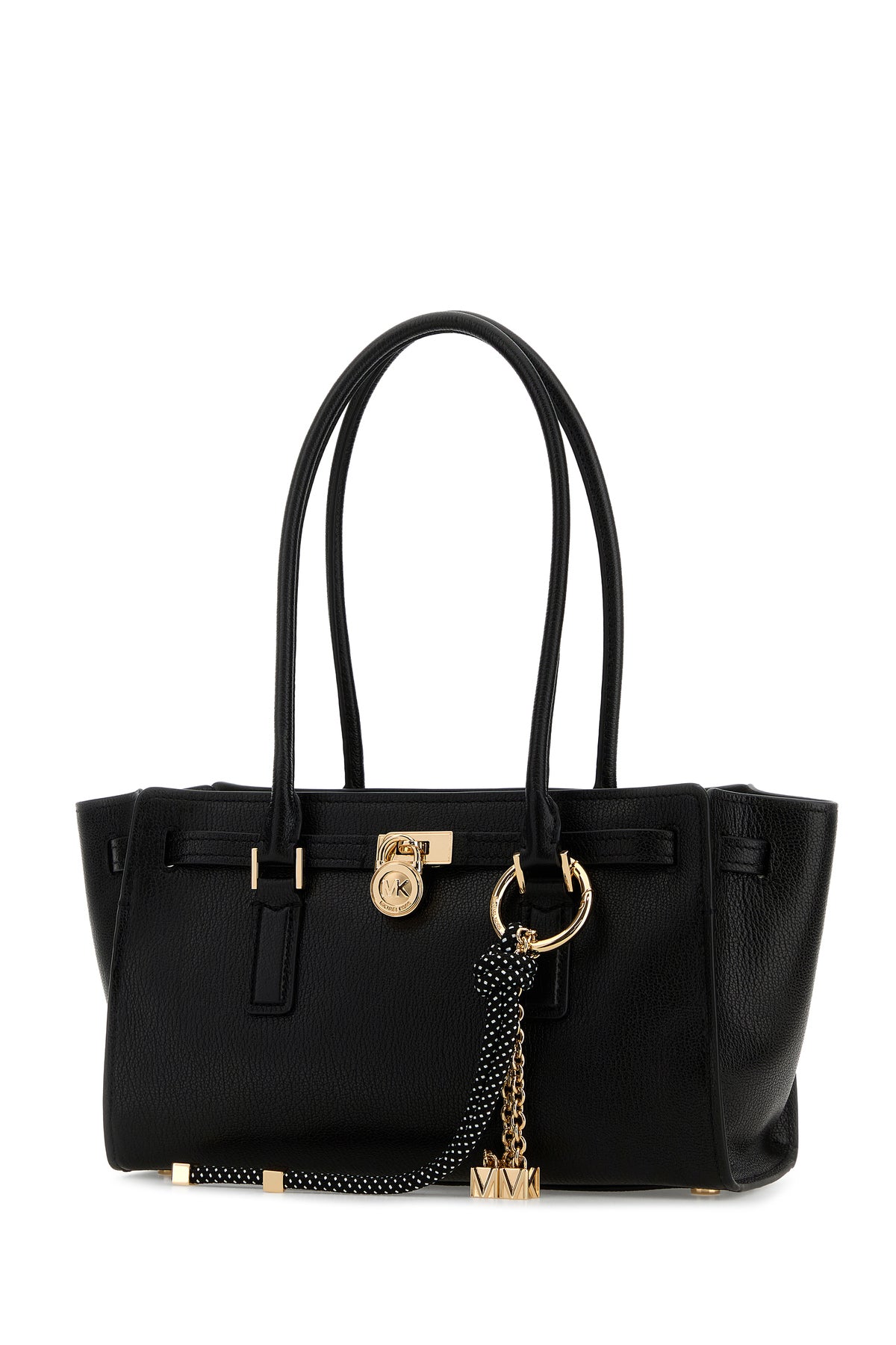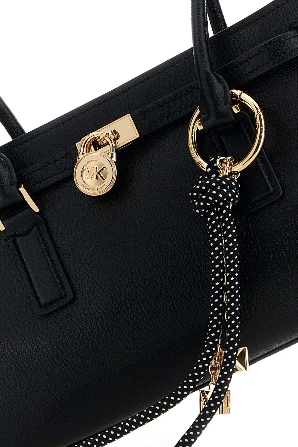 Shopping bag realized in pebble leather enriched by detachable leather and metal keychain accessory.