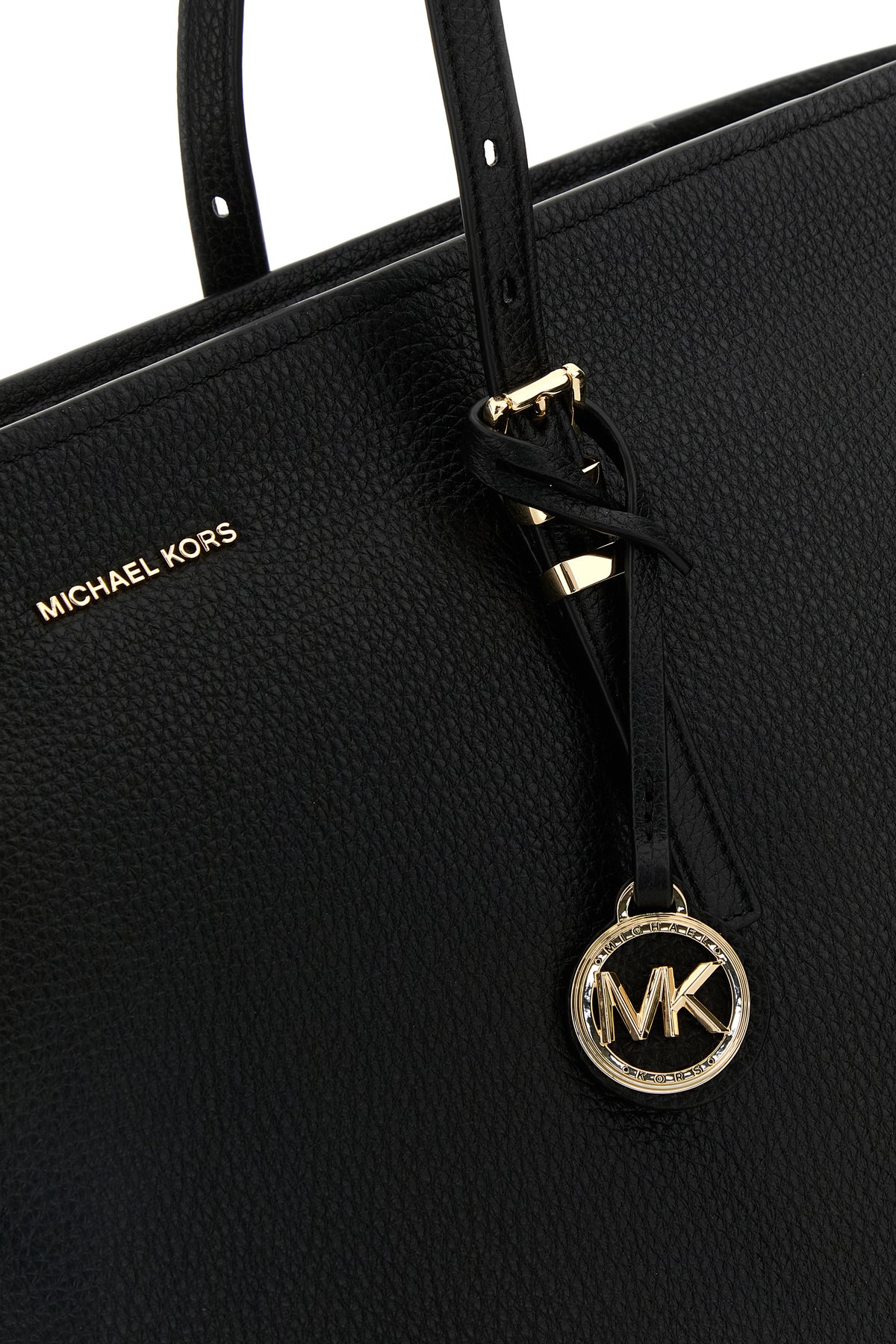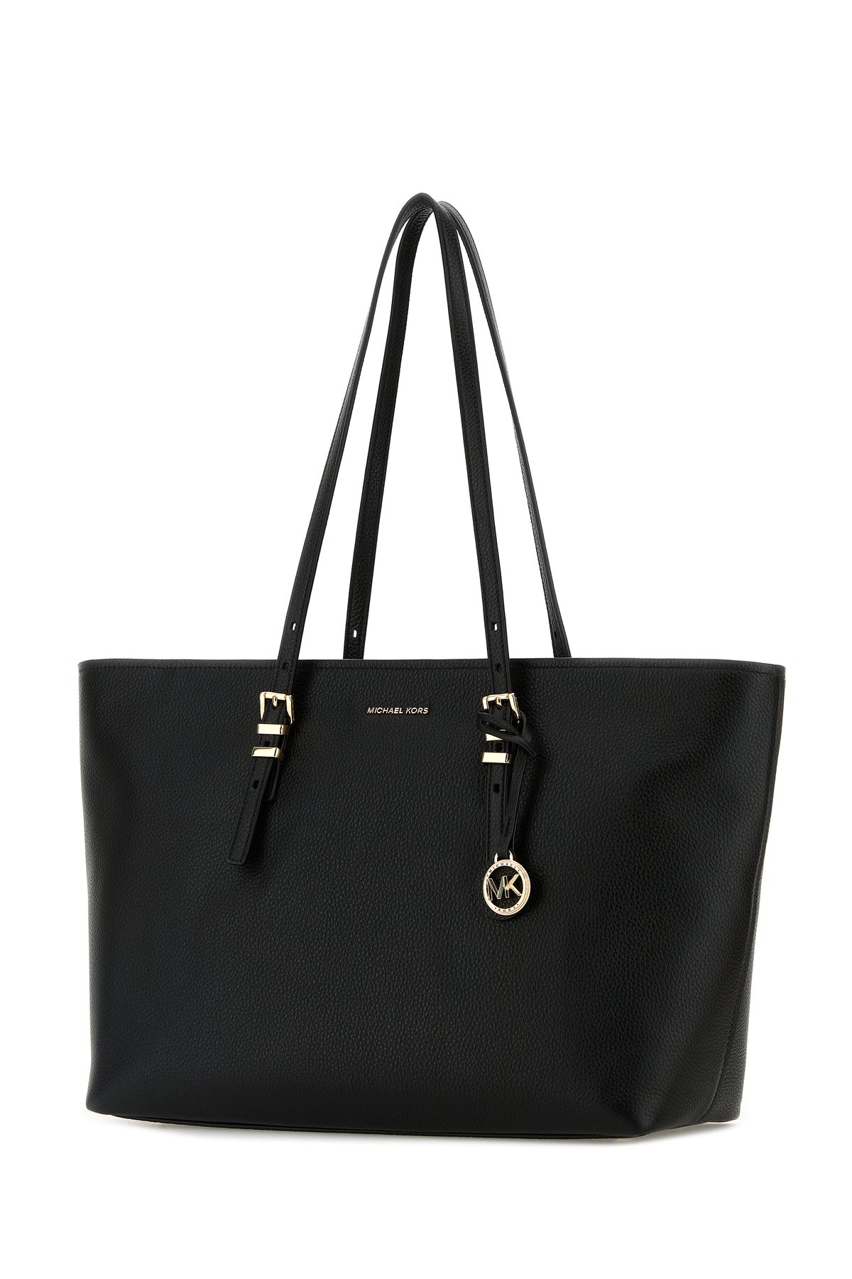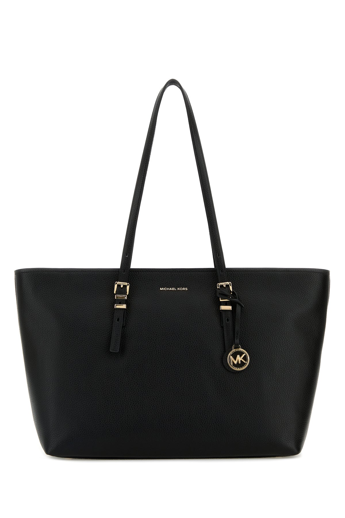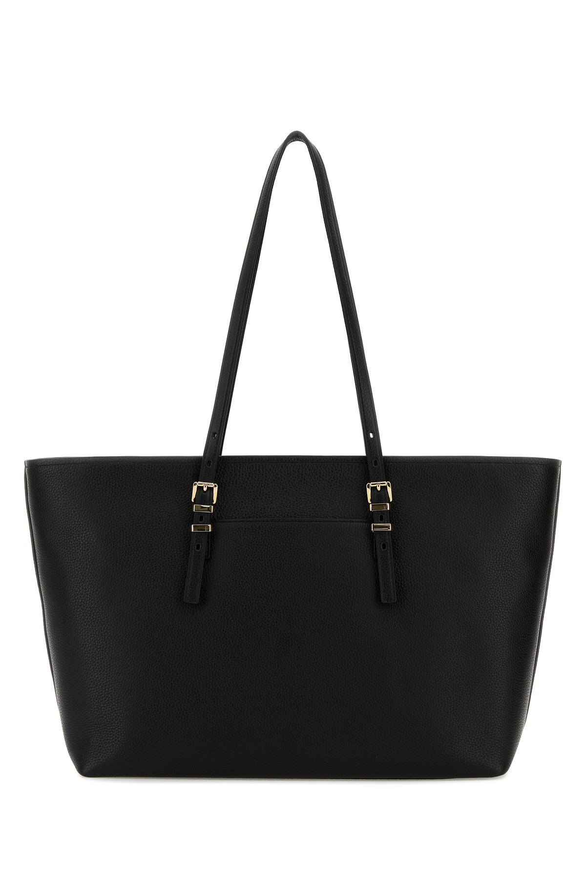 Shopping bag realized in pebble leather enriched by metal lettering logo at the front.