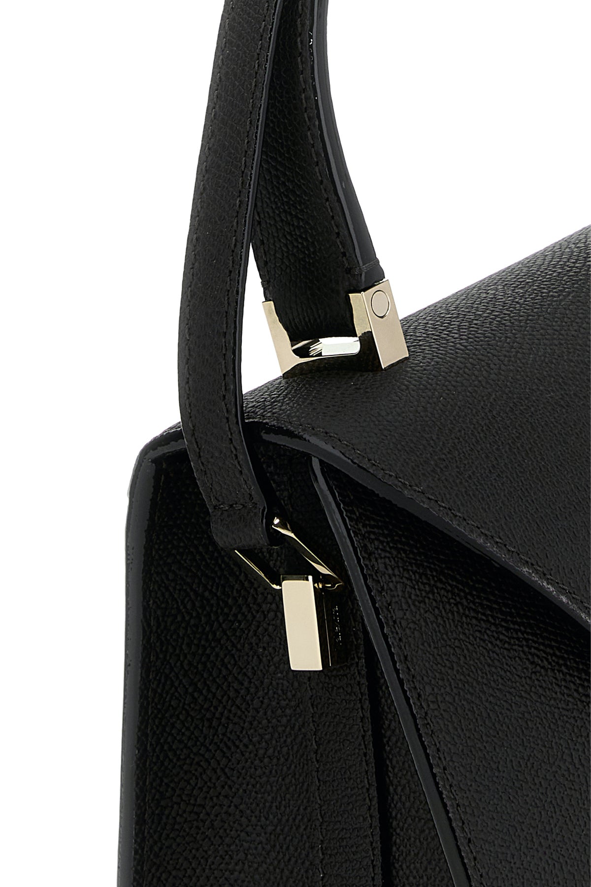 Handbag realized in grained calf leather characterized by tonal leather flat handles.