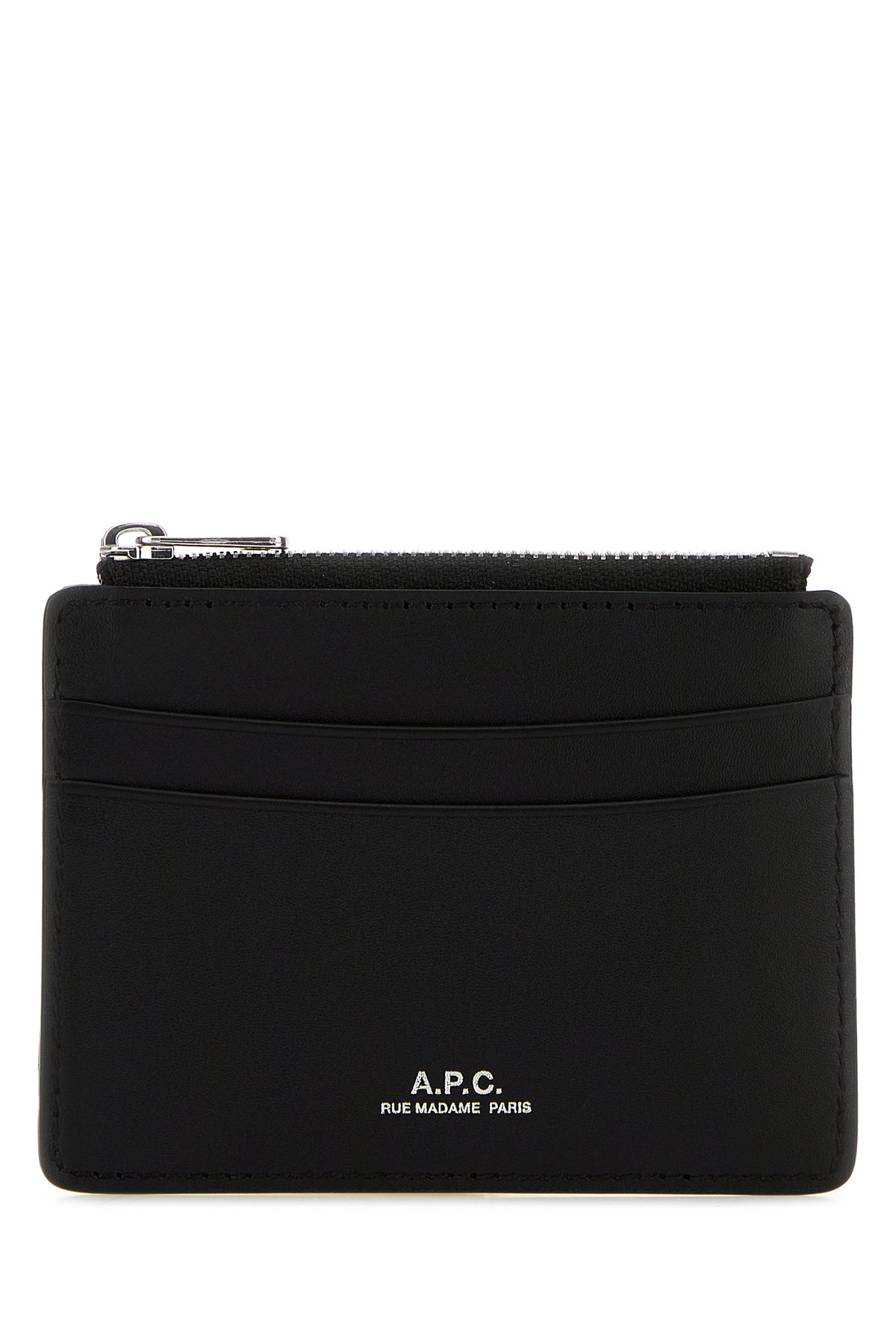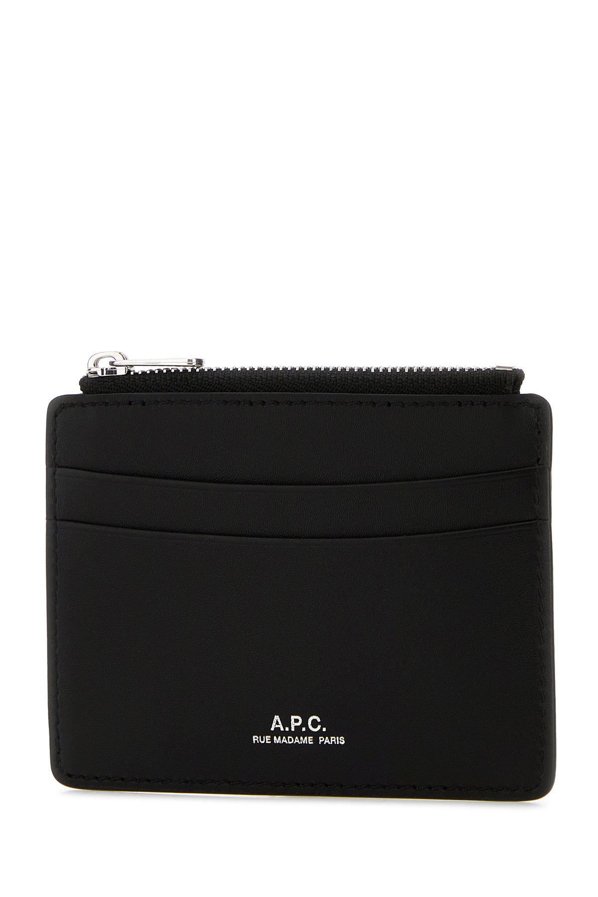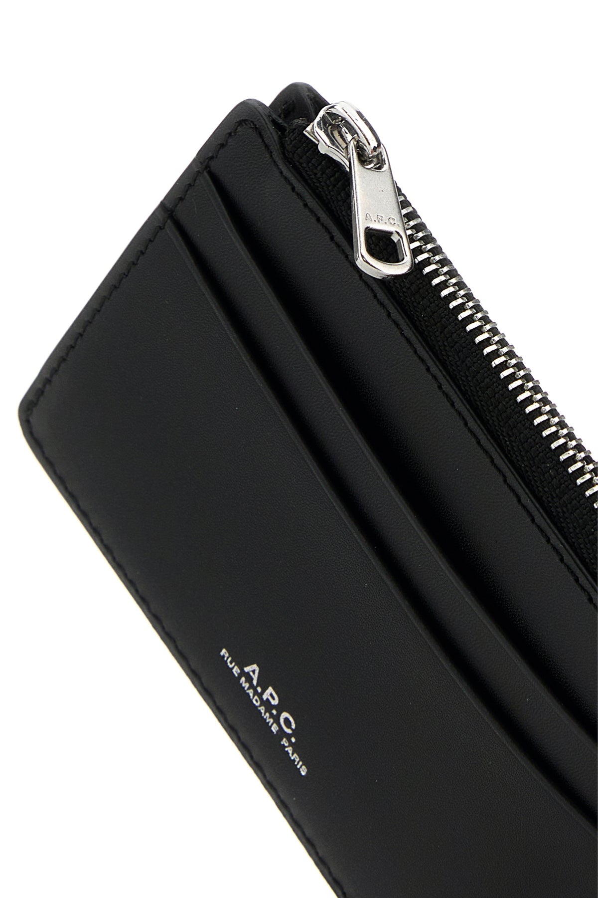- A central zip pocket and three credit card slots
