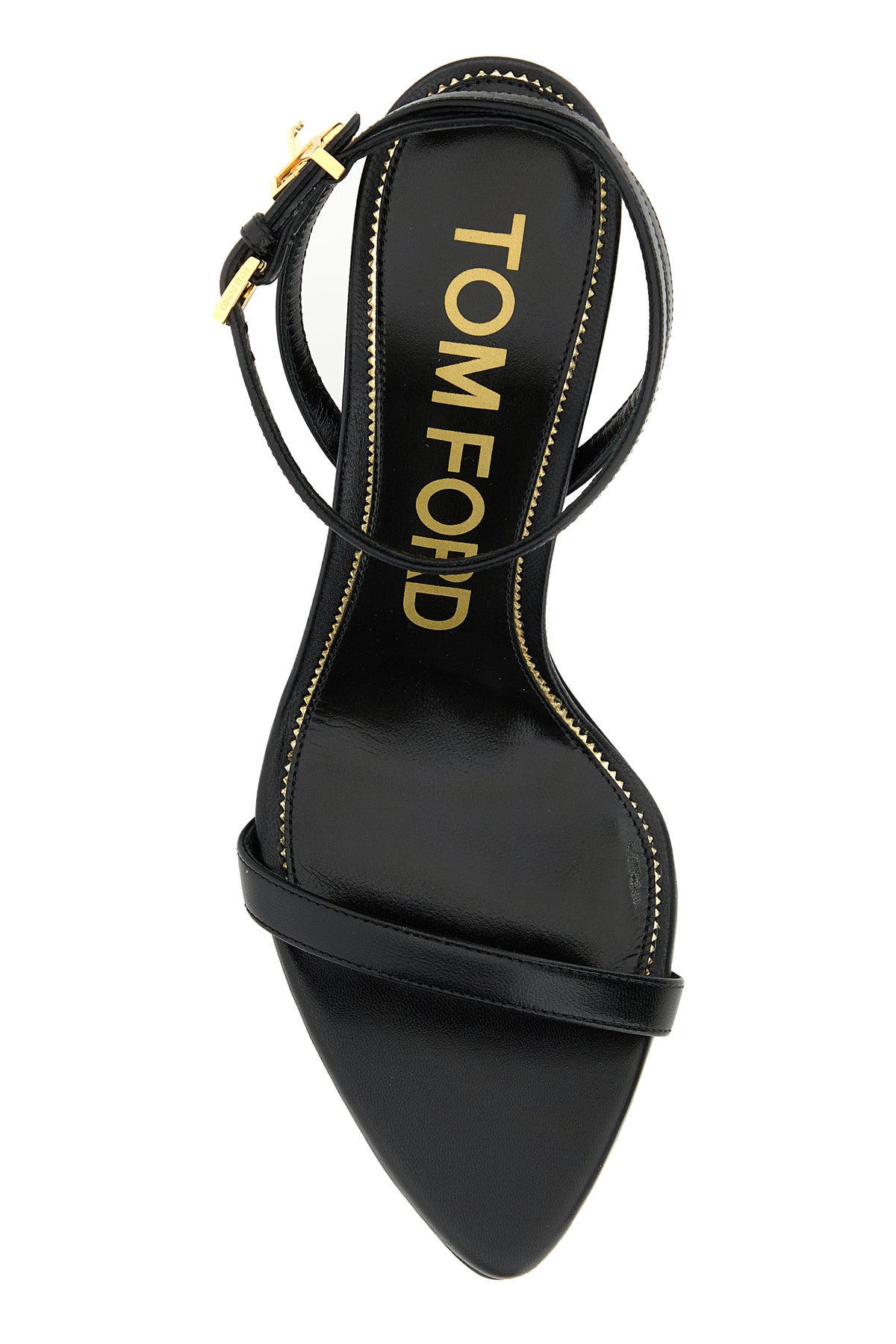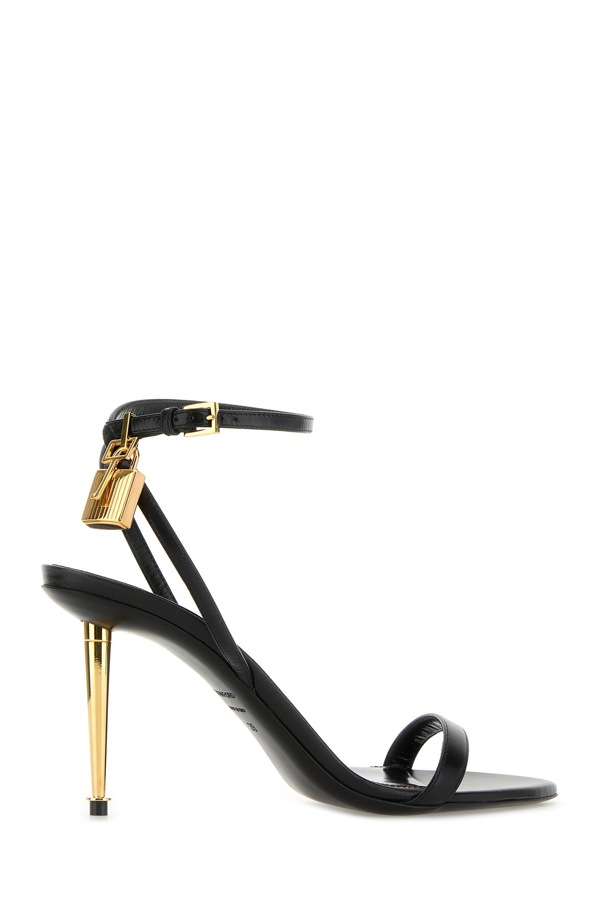 Sandals realized in pebble healthier enriched by metal padlock on the adjustable ankle strap closure.