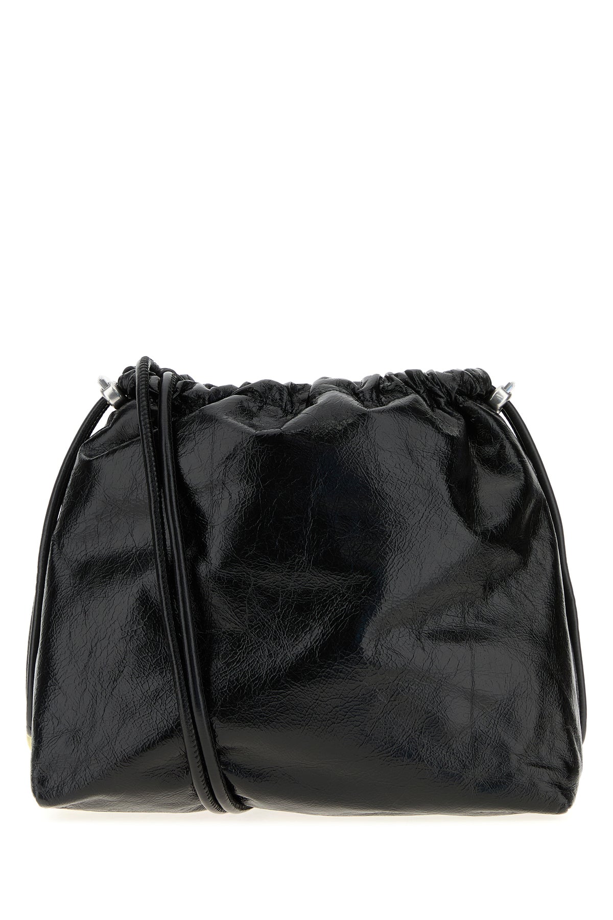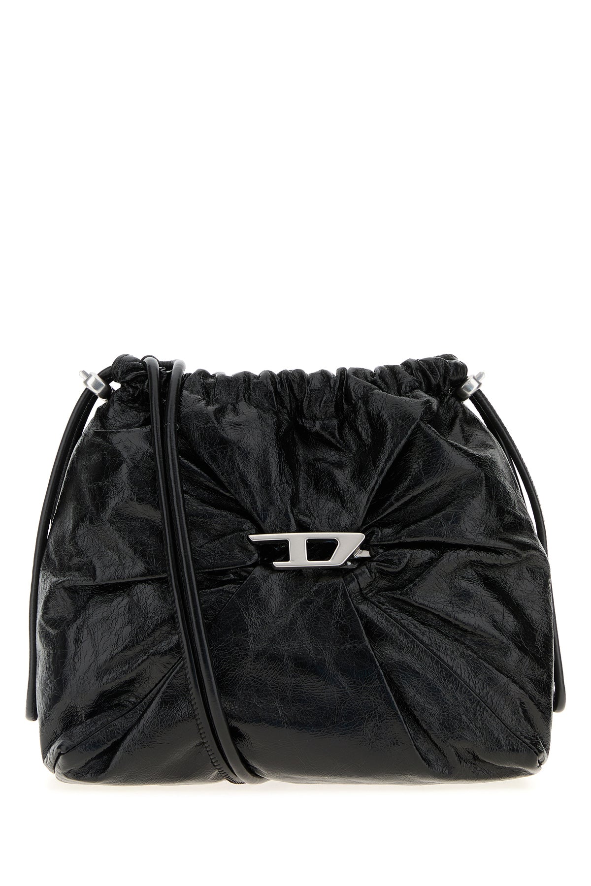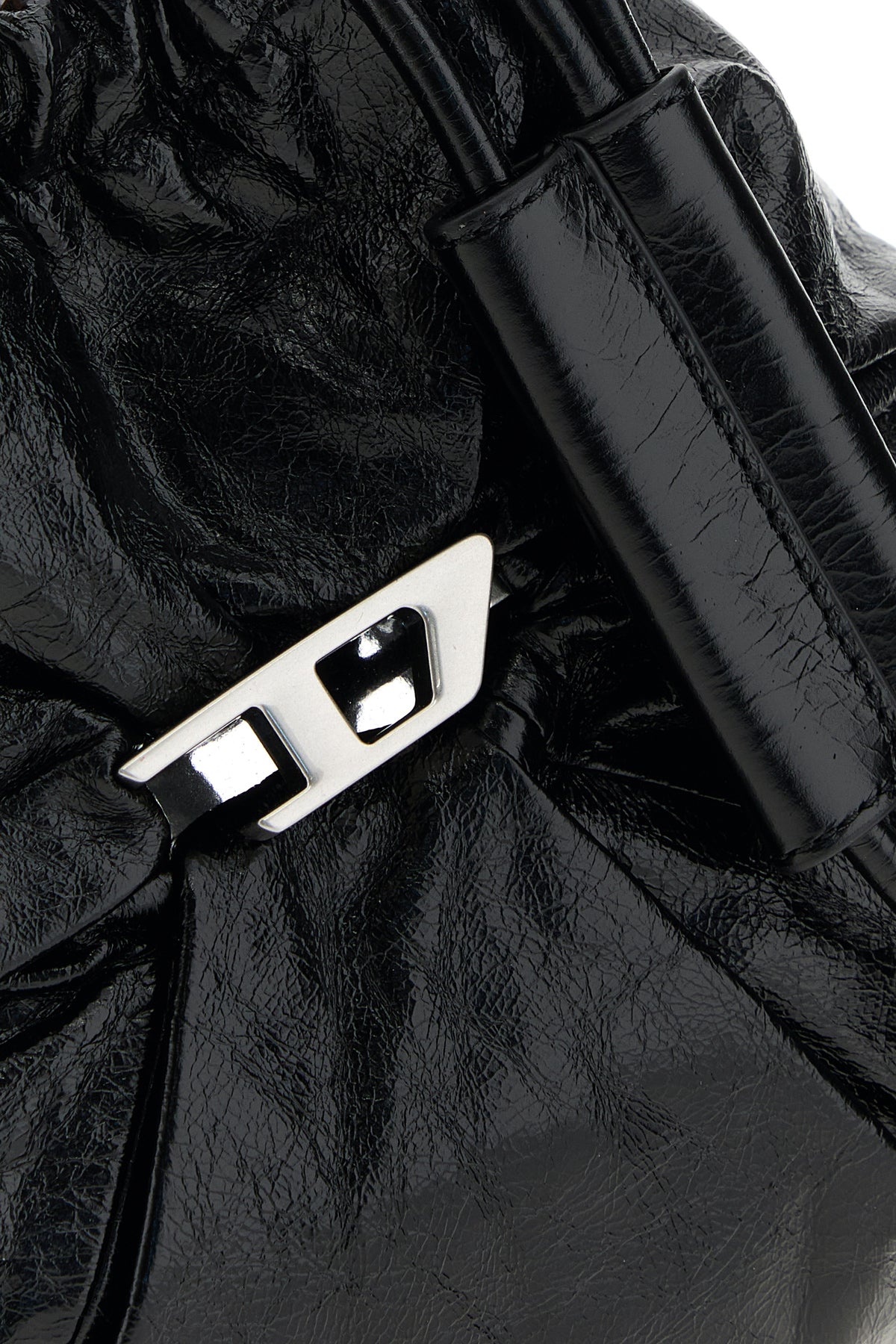 Bucket bag realized in pebble leather enriched by D metal detail at the front.
