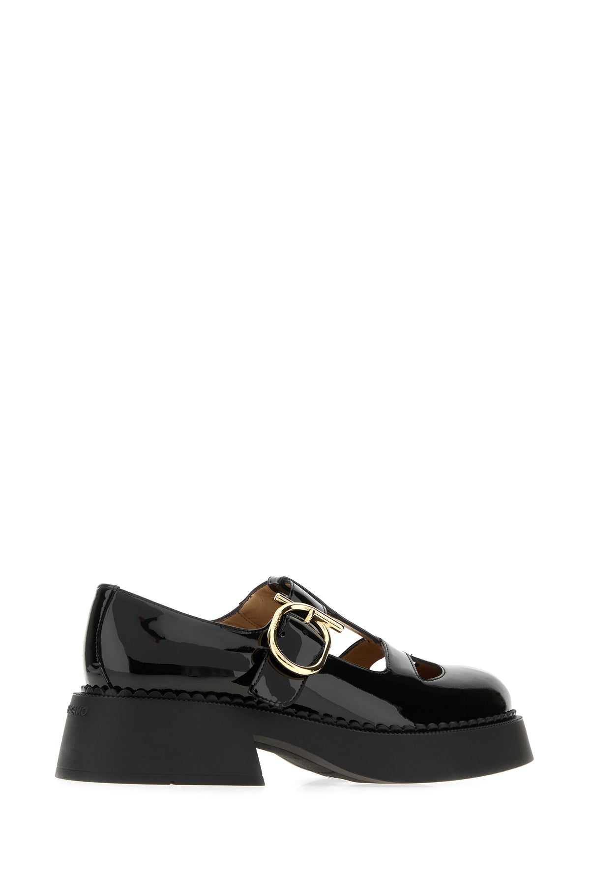 Ballerinas realized in patent leather characterized by logo in relief at the back.