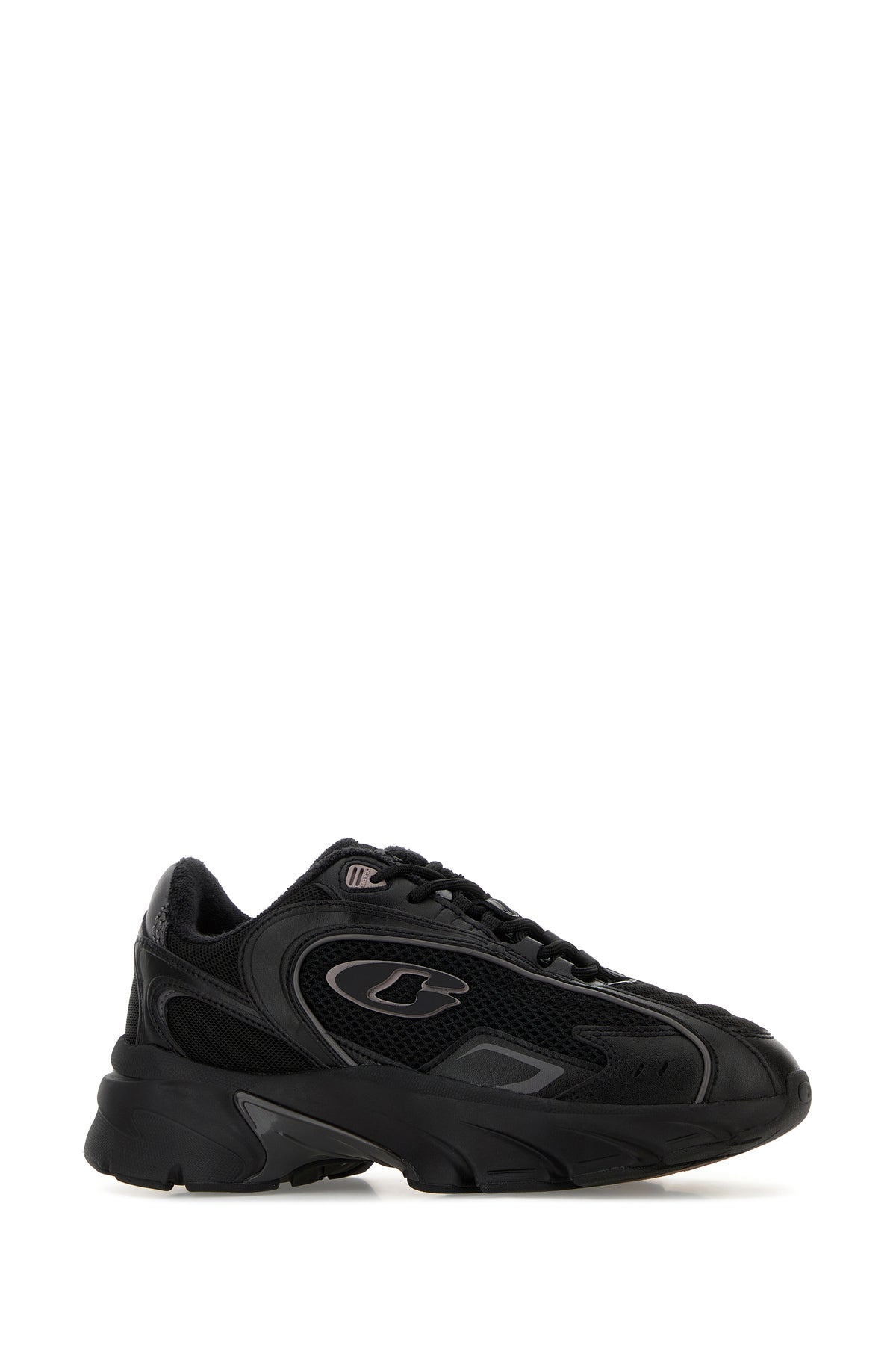 Black mesh and leather sneakers
