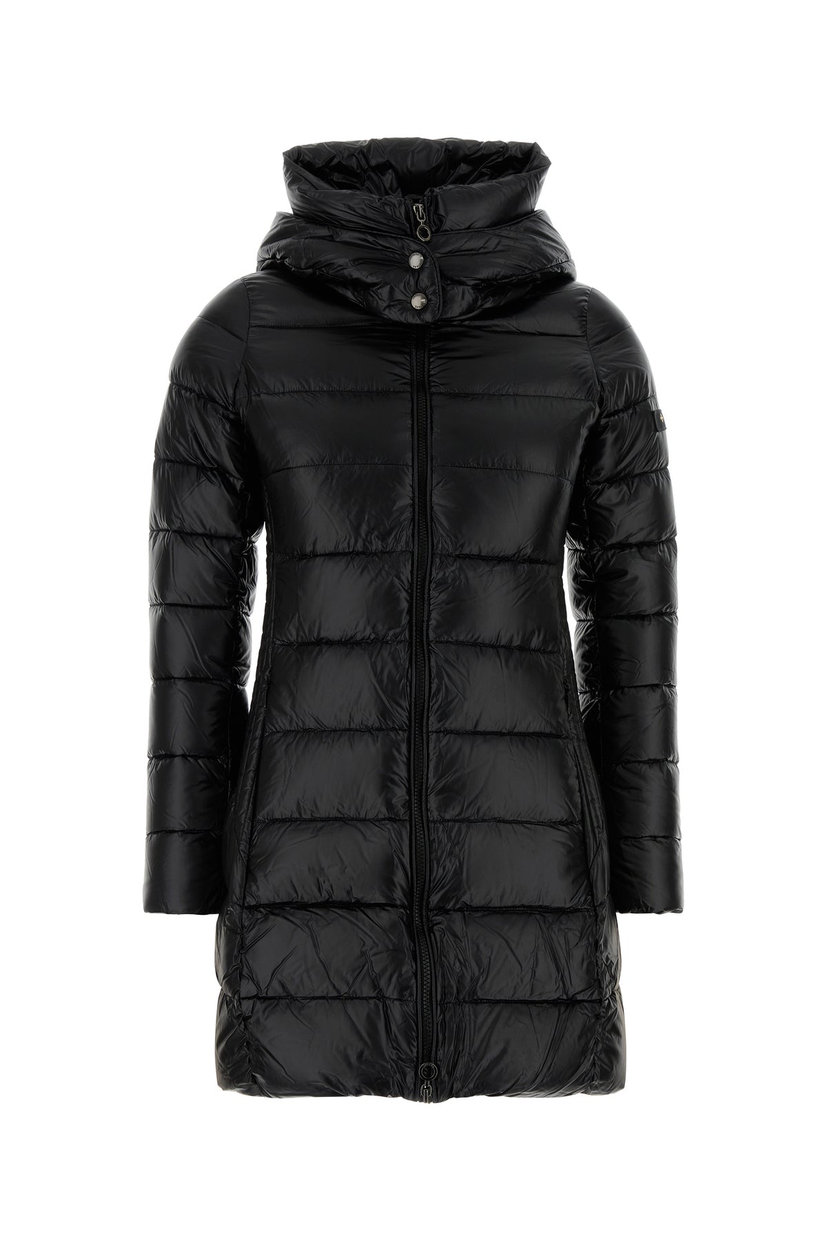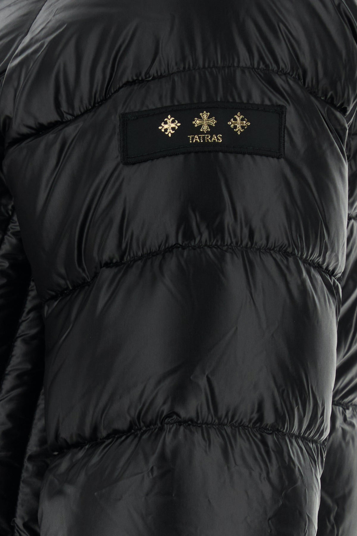 Down jacket realized in quilted nylon enriched by logoed label on the sleeve.
