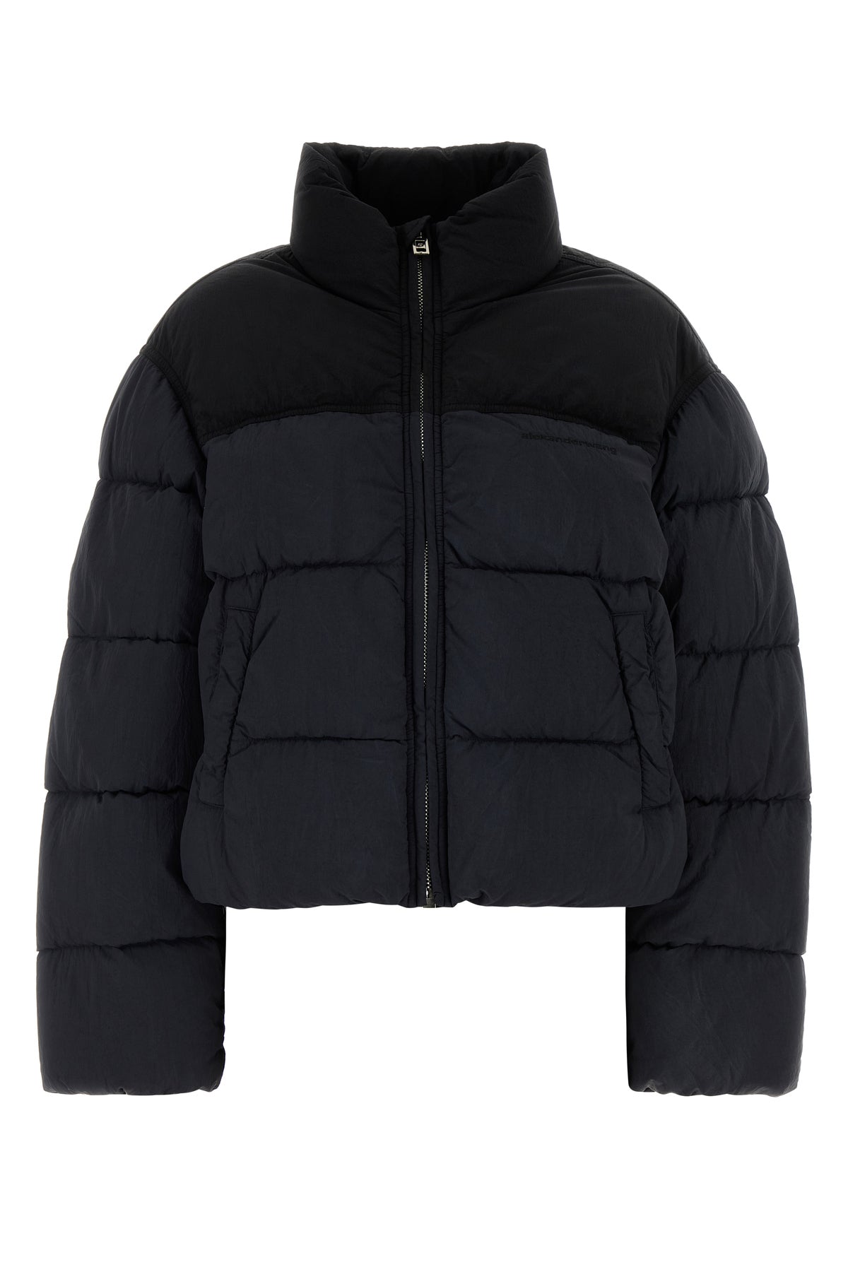 Black nylon down jacket