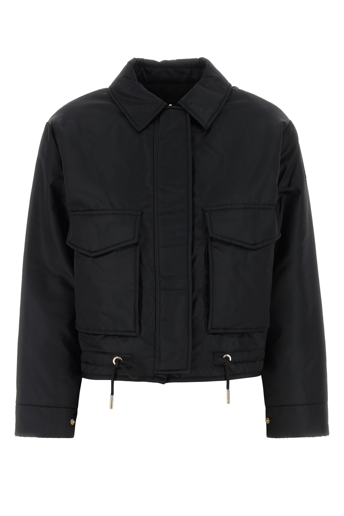 Jacket realized in nylon enriched by logoed metal detail on the sleeve.