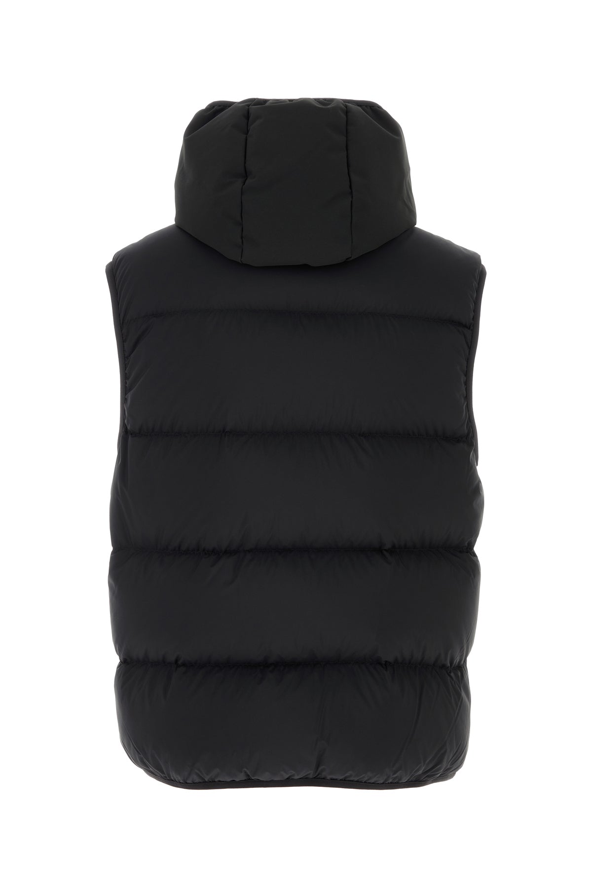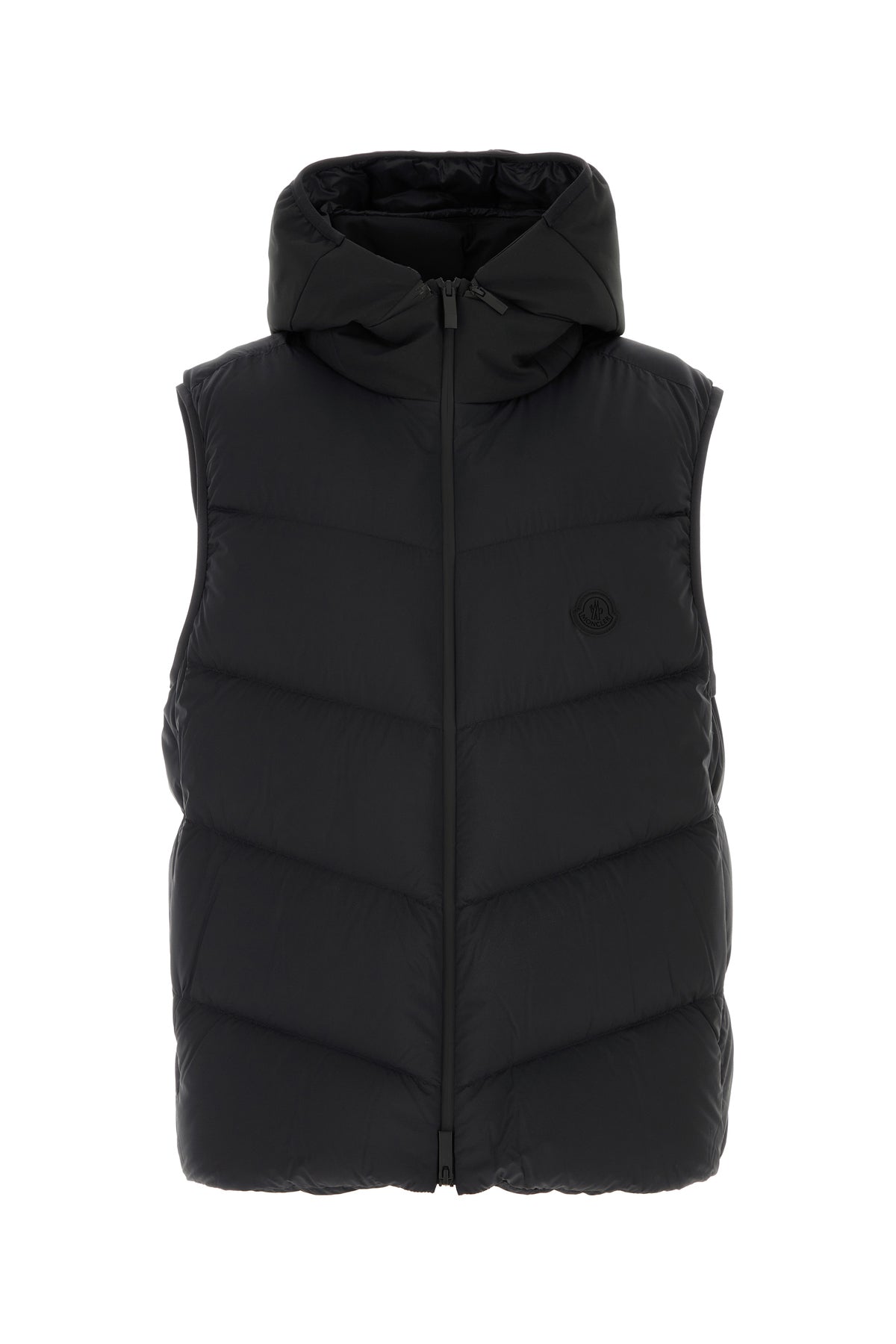 Sleeveless down jacket realized in quilted nylon enriched by rubberized logoed patch on the chest.