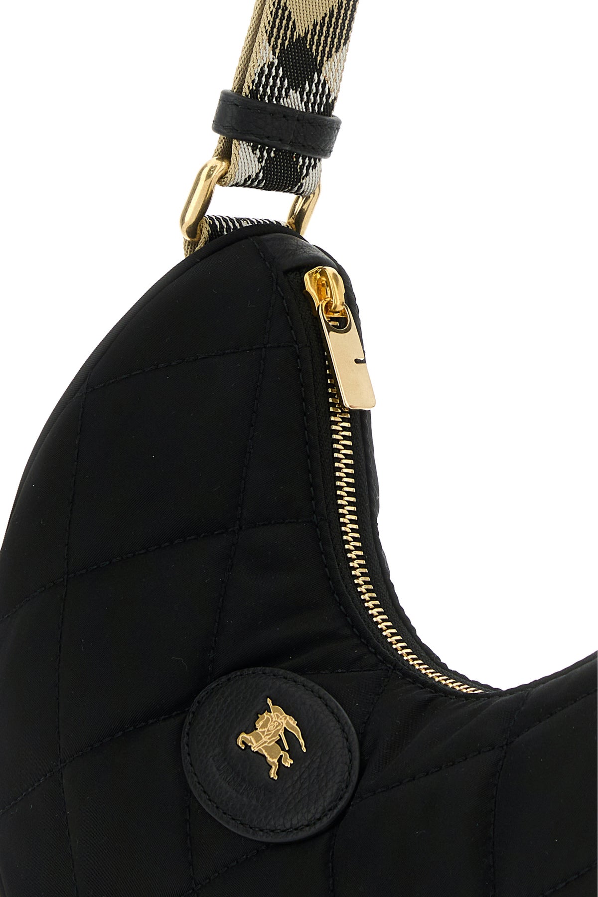 - Adjustable Burberry Check motif fabric shoulder strap