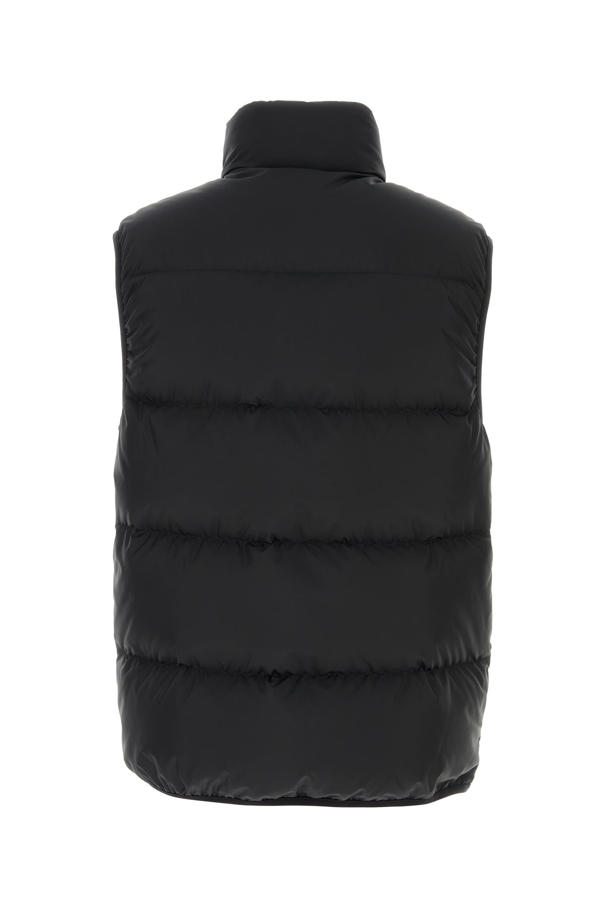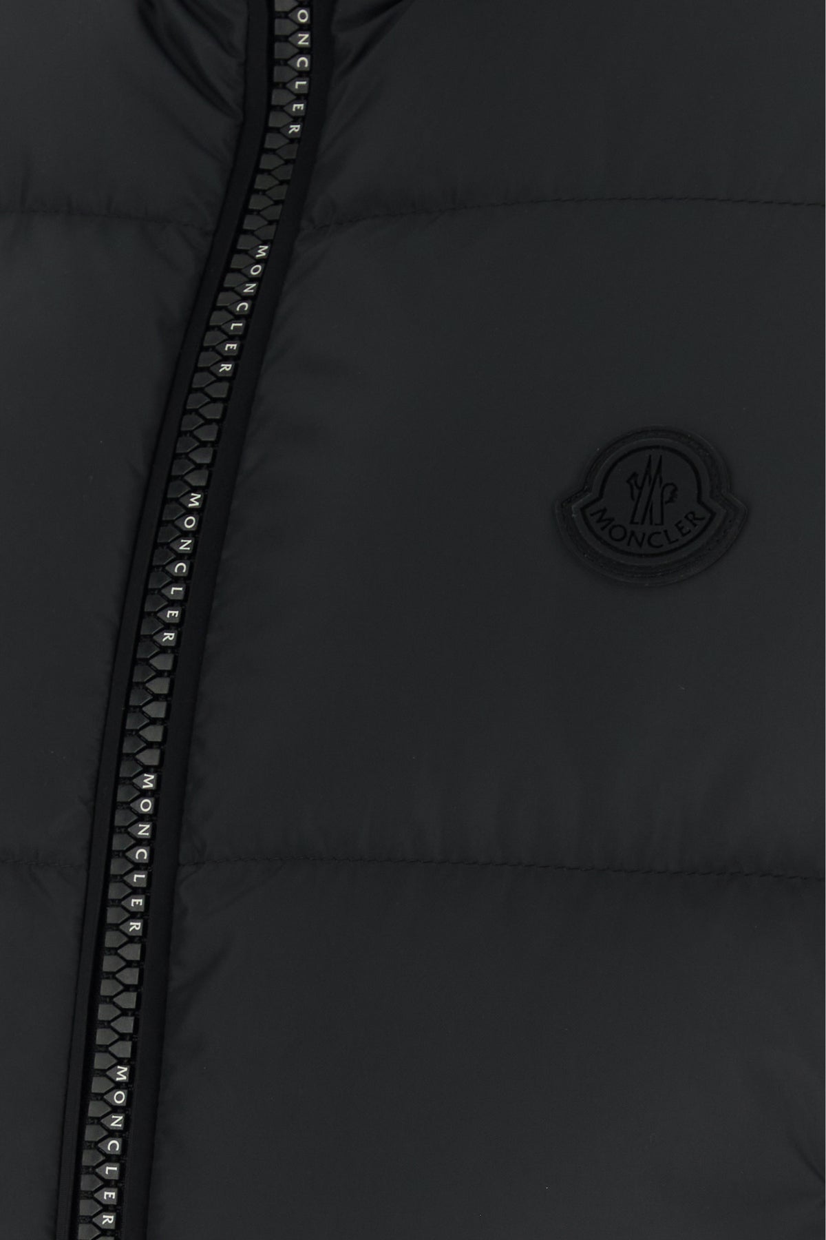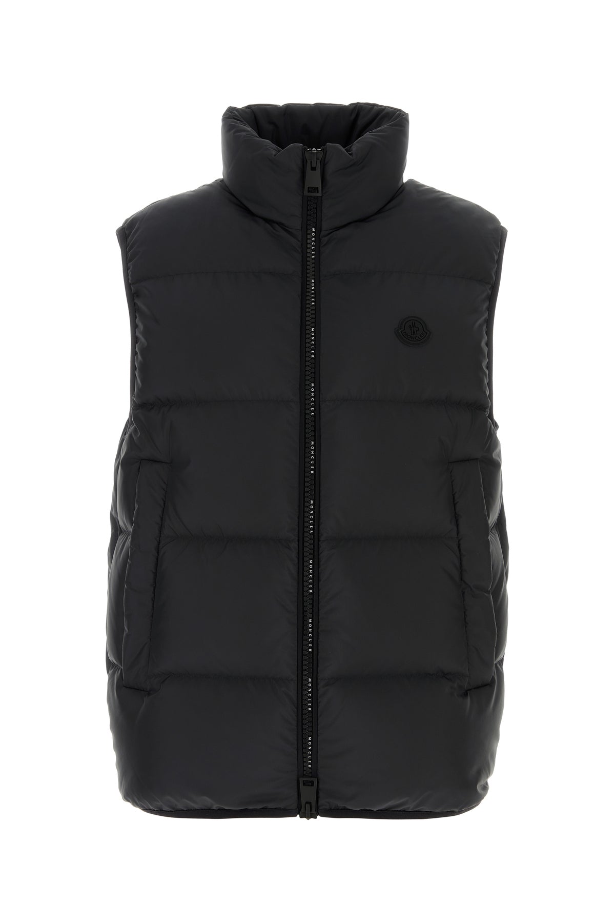 Sleeveless down jacket realized in quilter polyester enriched by rubberized logoed patch on the chest.