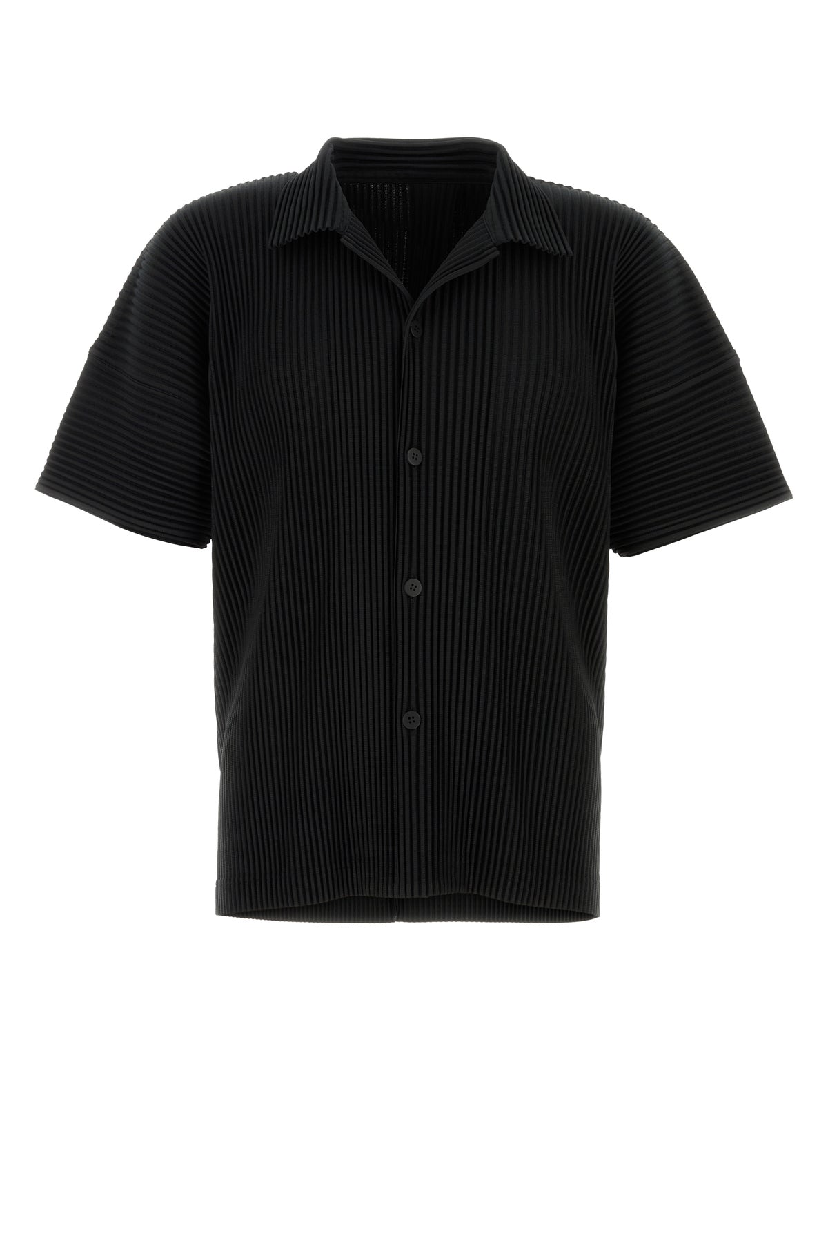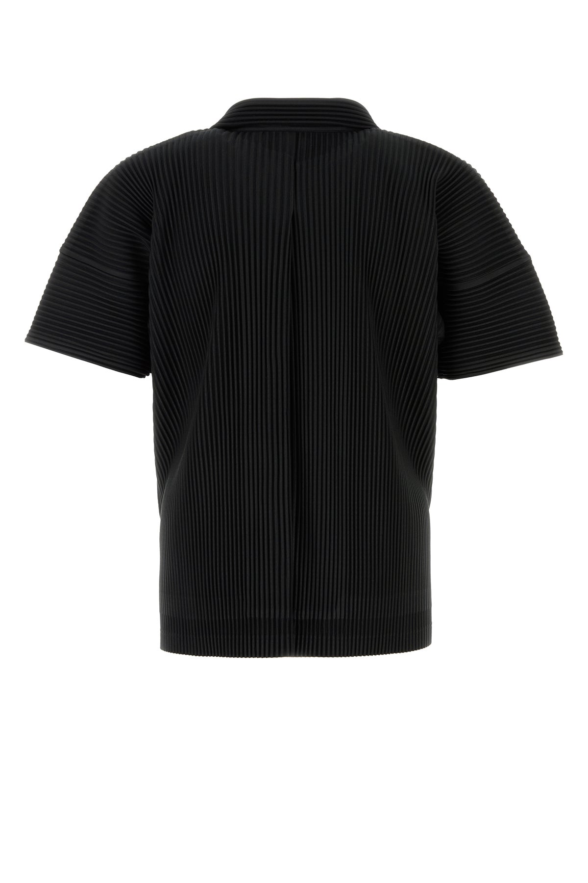Short-sleeves shirt realized in pleated polyester characterized by collar.
