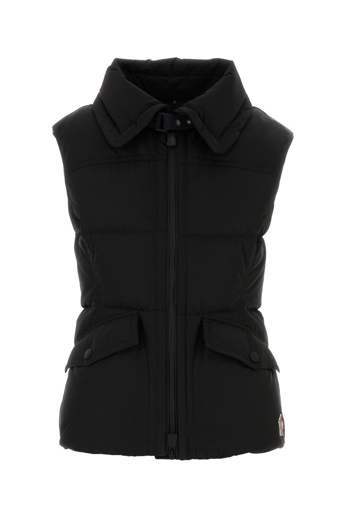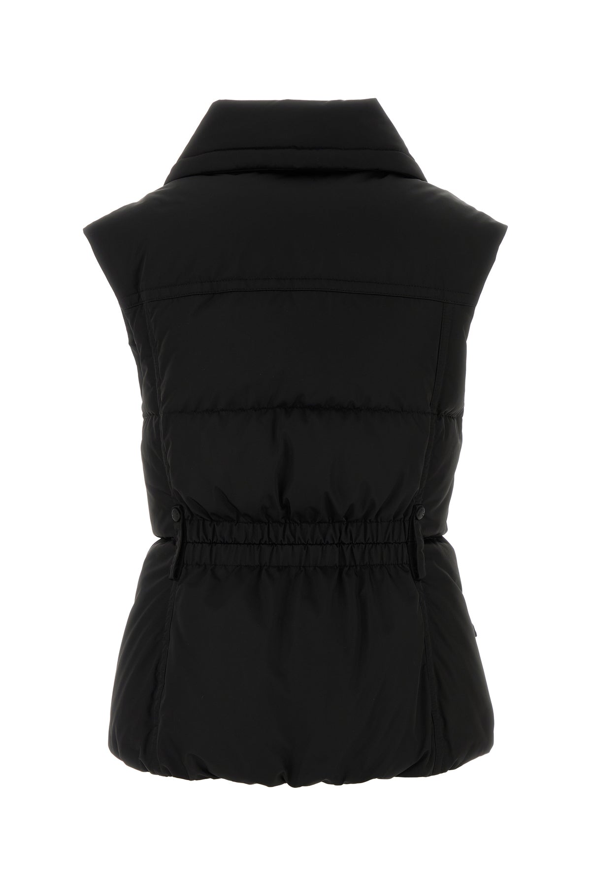 Sleeveless down jacket realized in quilted polyester enriched by contrasting logoed patch on the hemline.