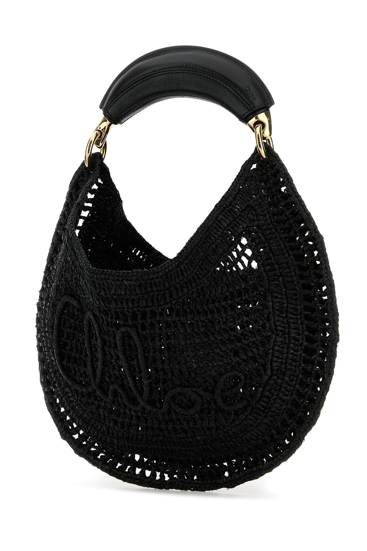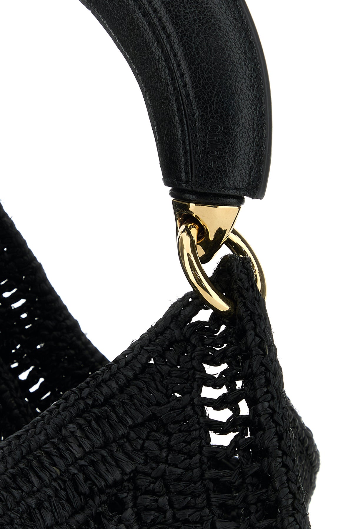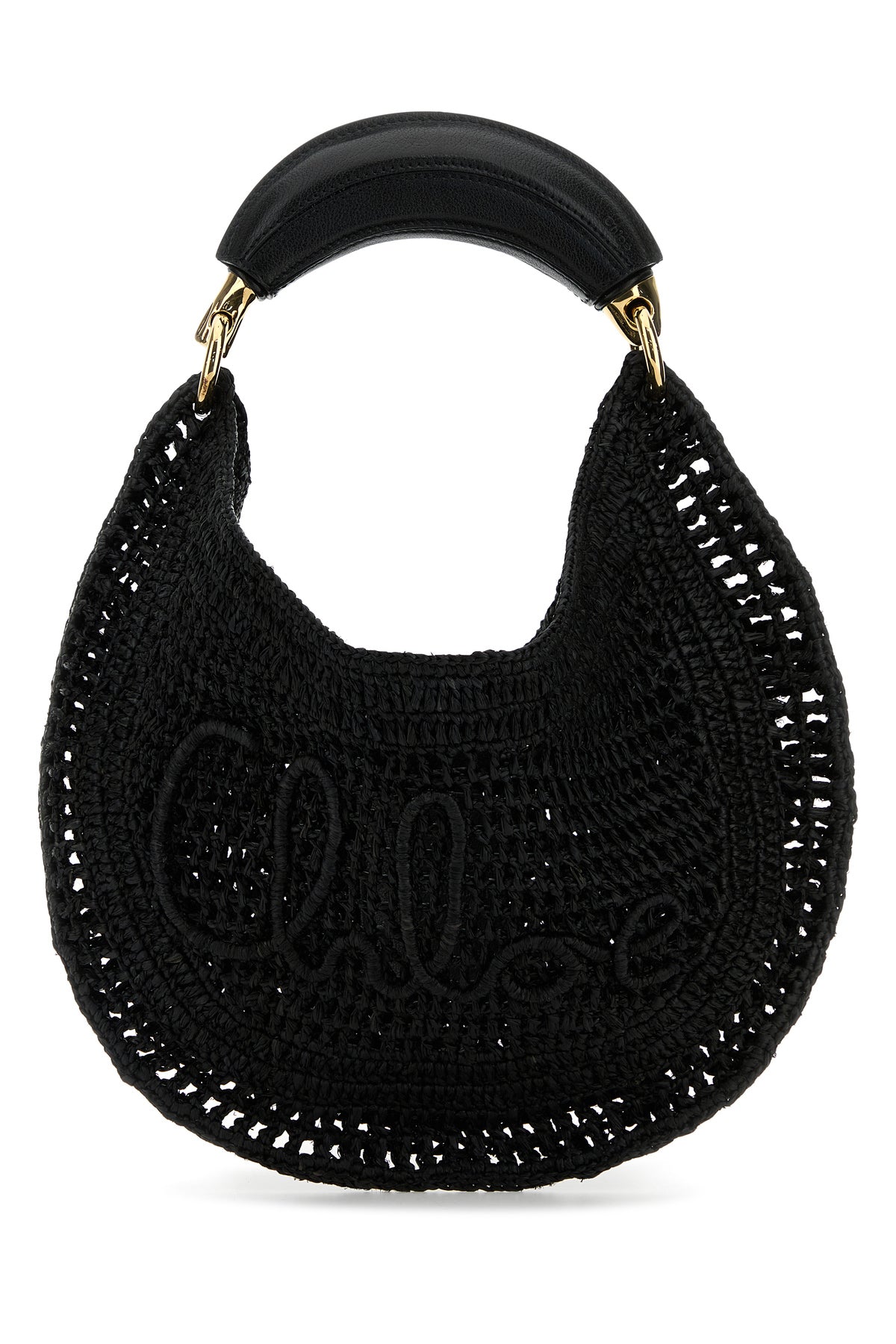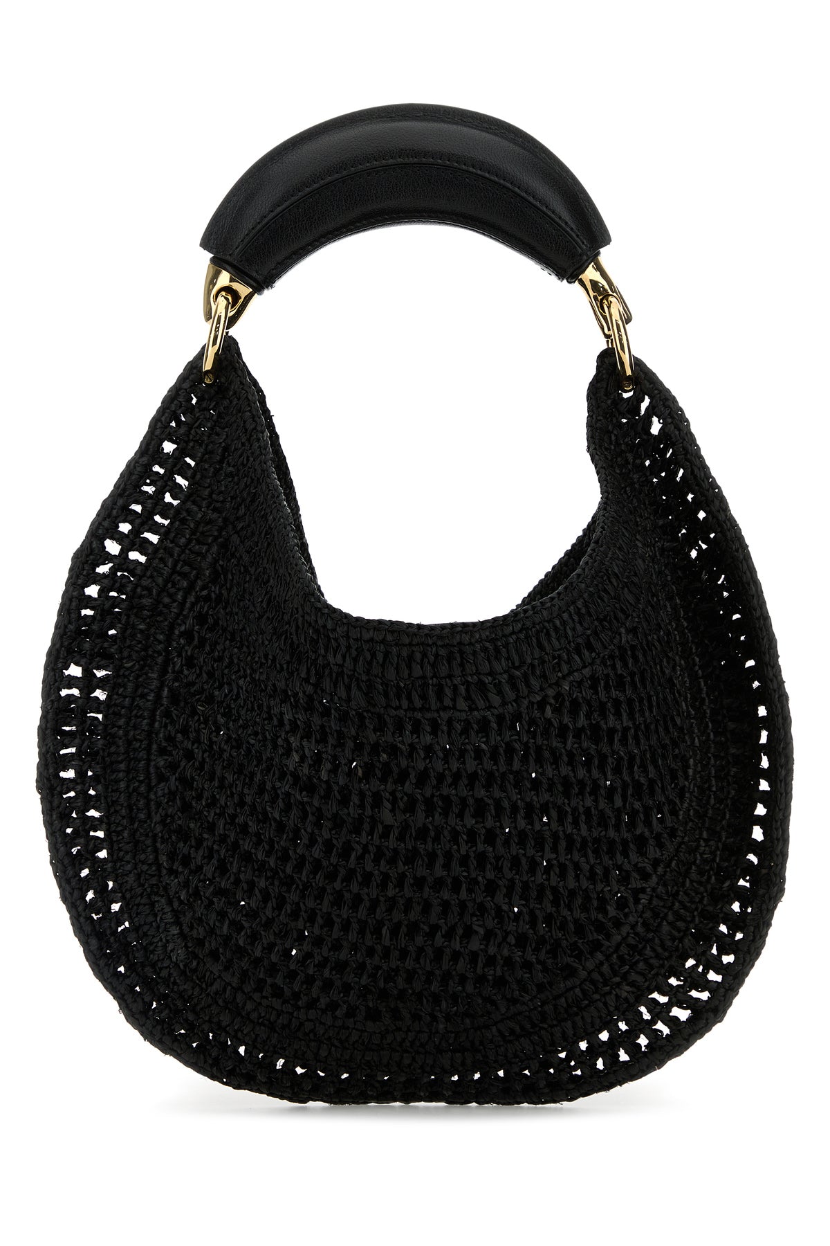 Handbag realized in raffia characterized by tonal embroidered logo at the front.