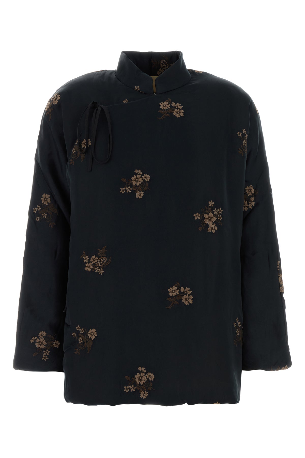 Blazer realized in satin characterized by floral embroidery on the entire surface.