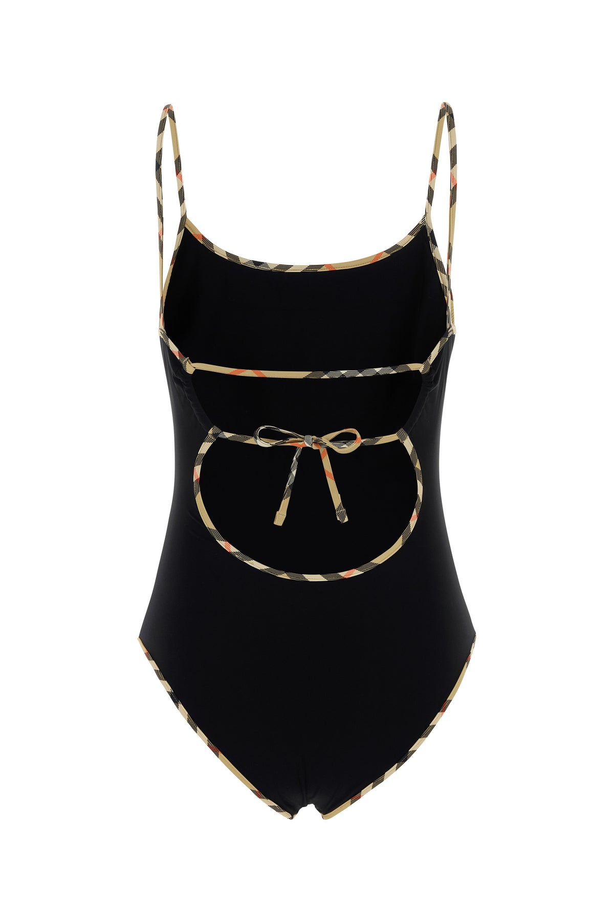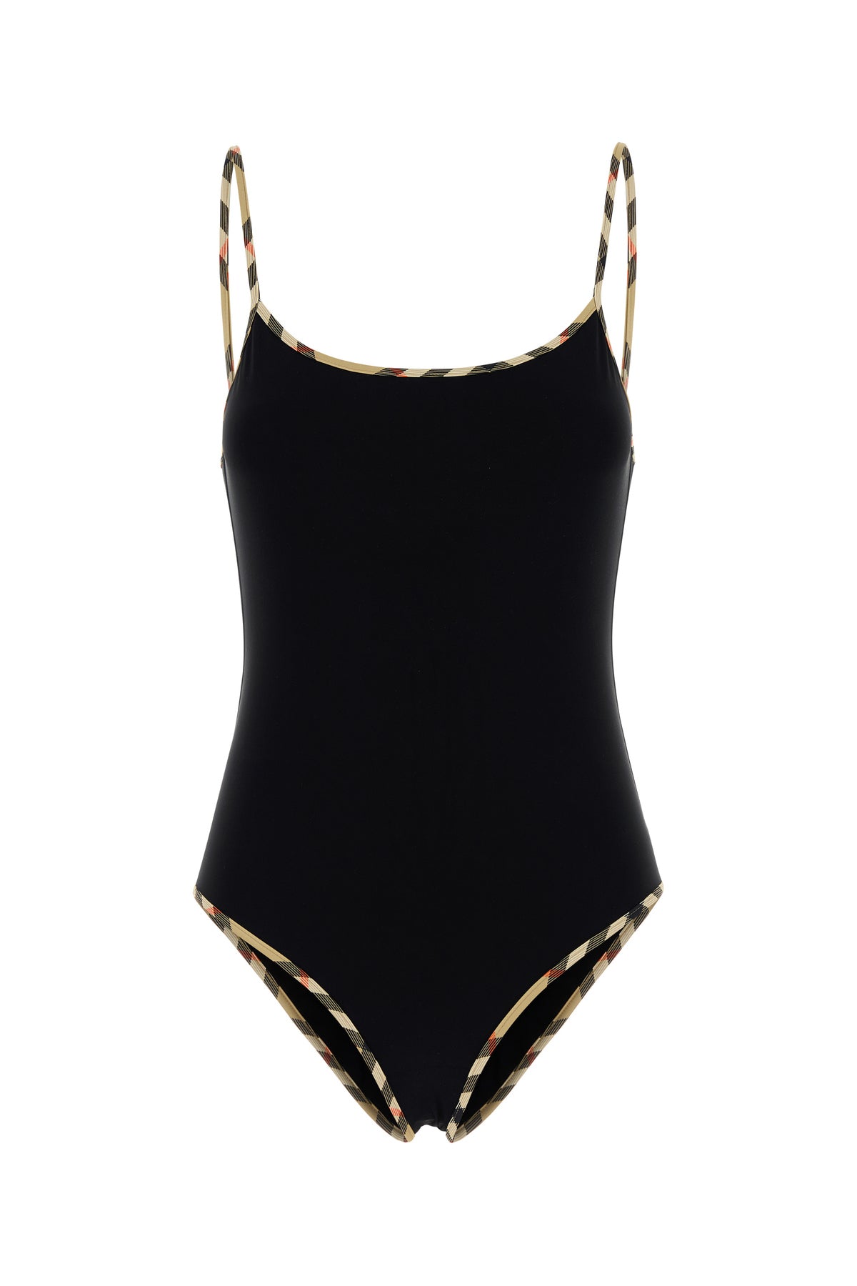 Swimsuit realized in stretch nylon characterized by Burberry Check motif on the trimmings.