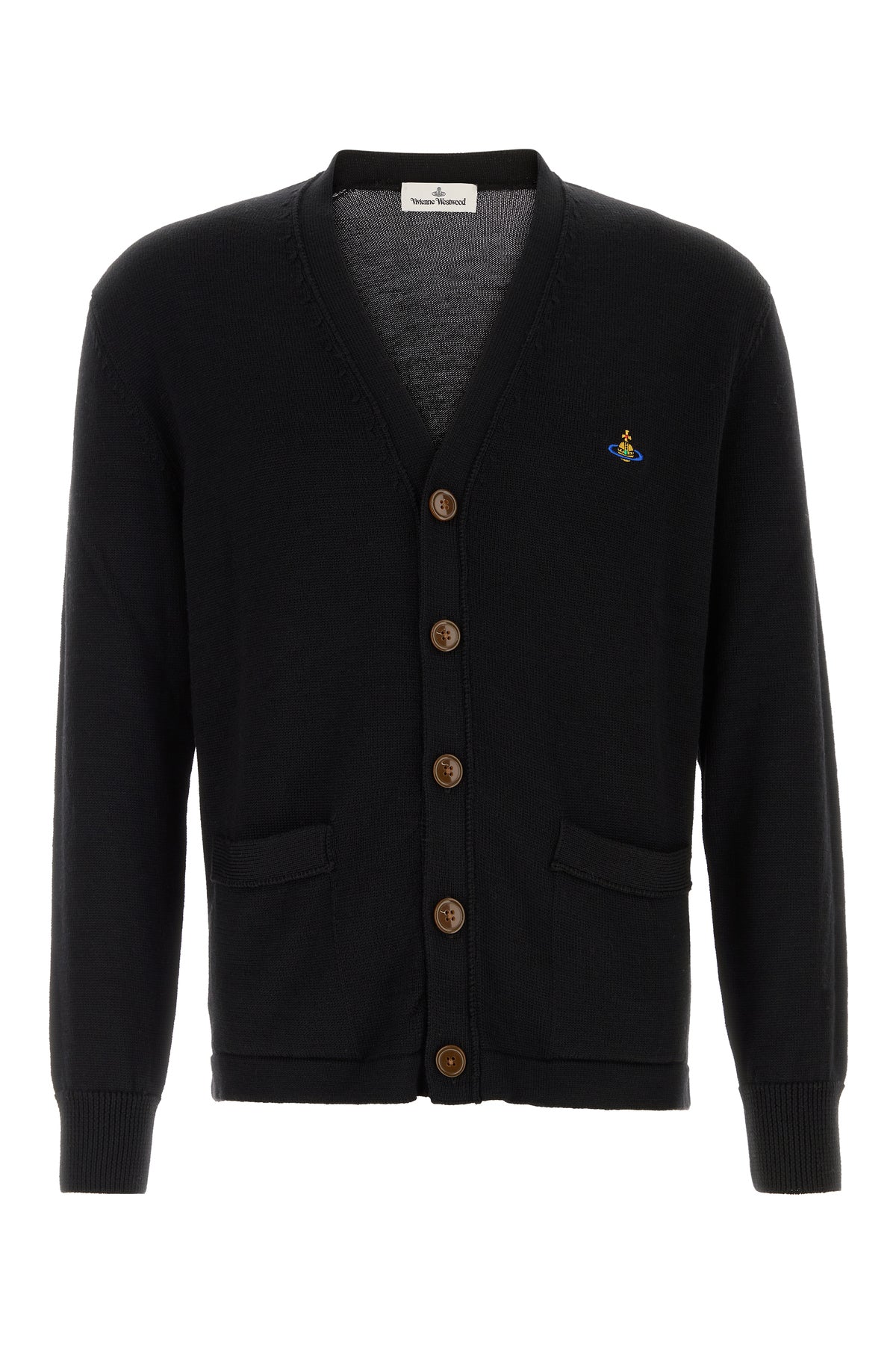 Cardigan realized in pure virgin wool characterized by Orb embroidery on the chest.