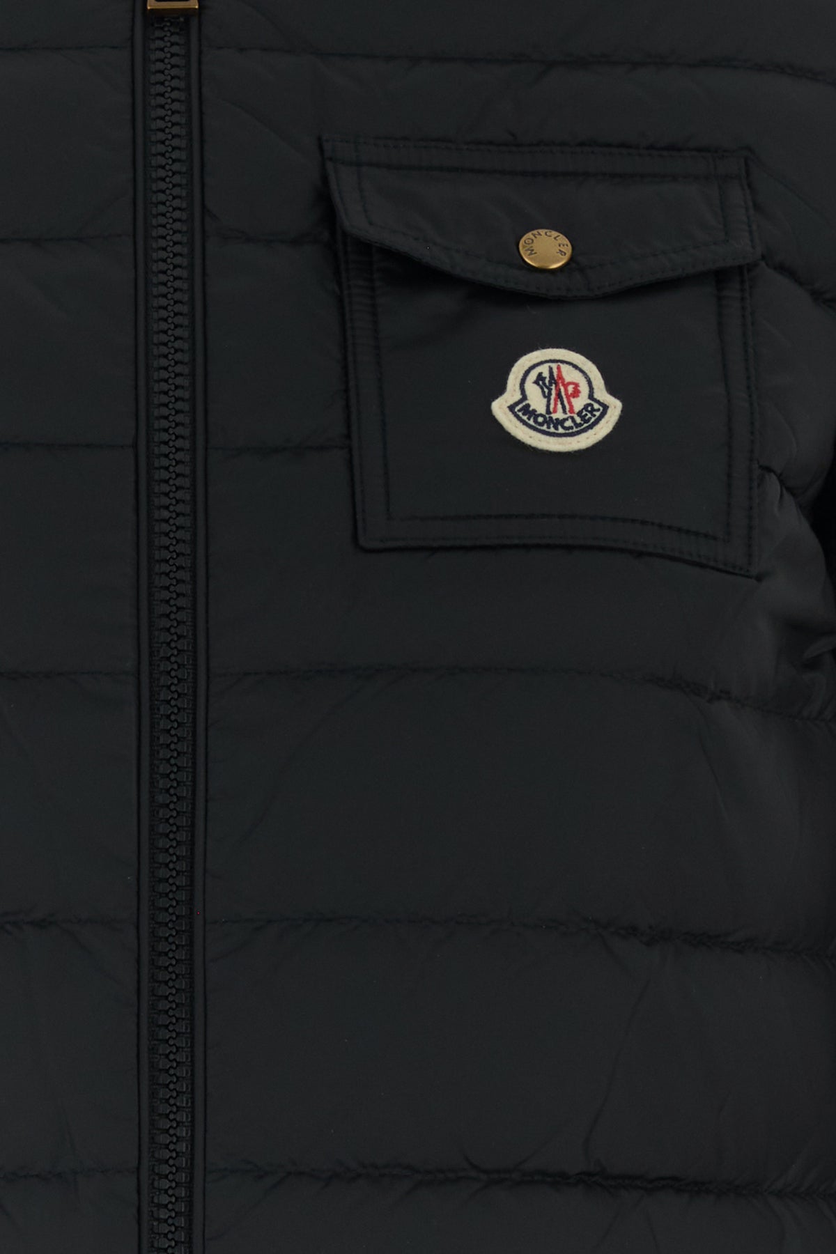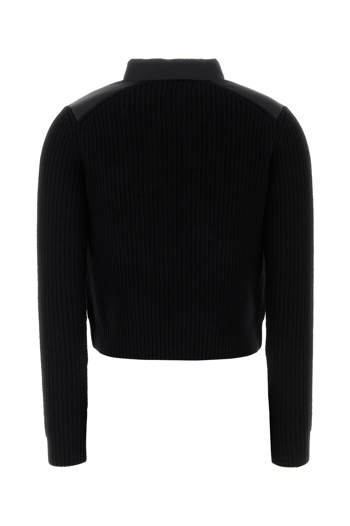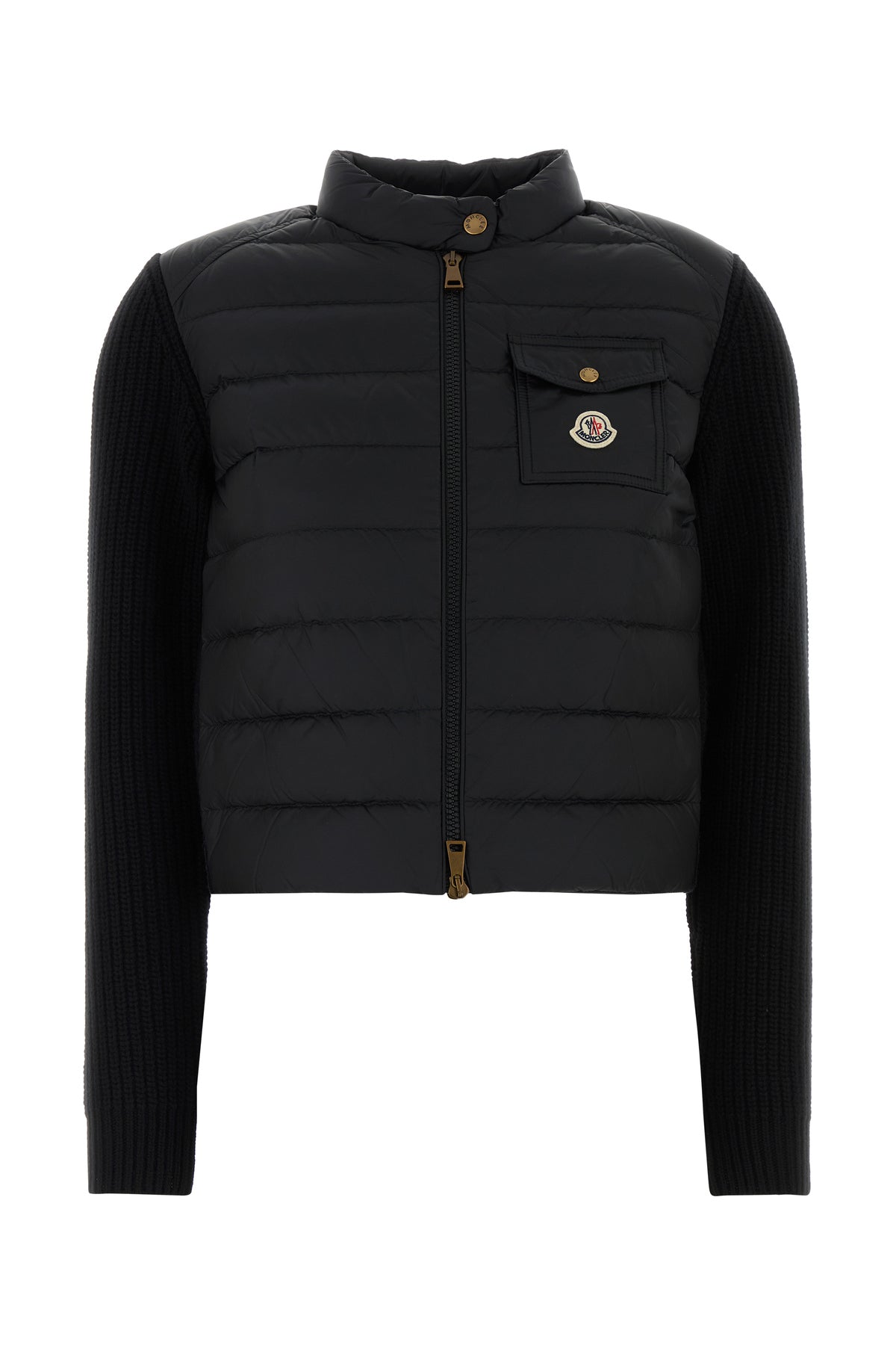 Cardigan realized in virgin wool and cashmere with quilted nylon insert enriched by contrasting logoed patch on the chest.