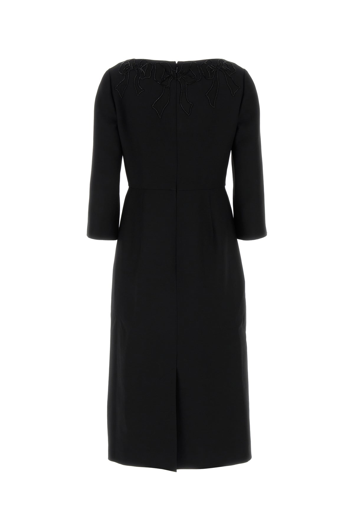 Dress realized in virgin wool and silk characterized by embroideries with beads on the crew-neck.
