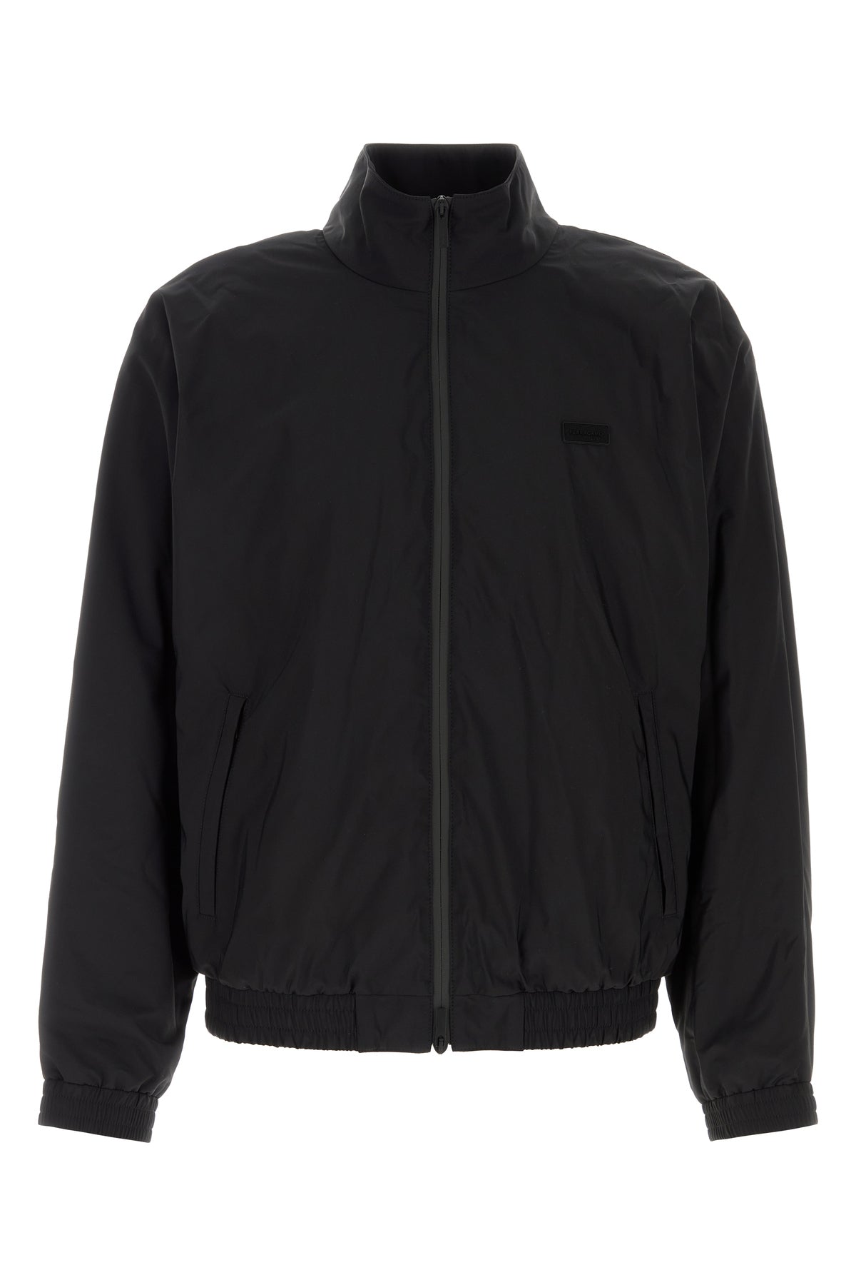Jacket realized in virgin wool blend enriched by rubberized logoed patch on the chest.