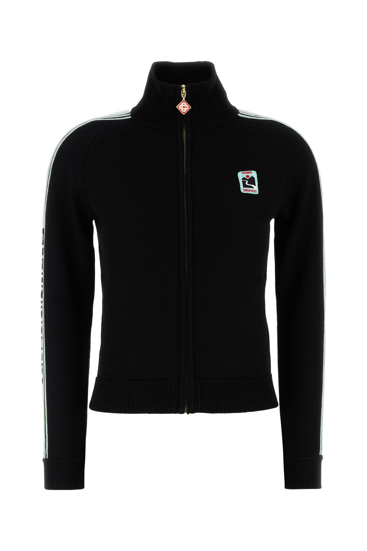 Cardigan realized in pure merino wool enriched by logoed patch on the chest.