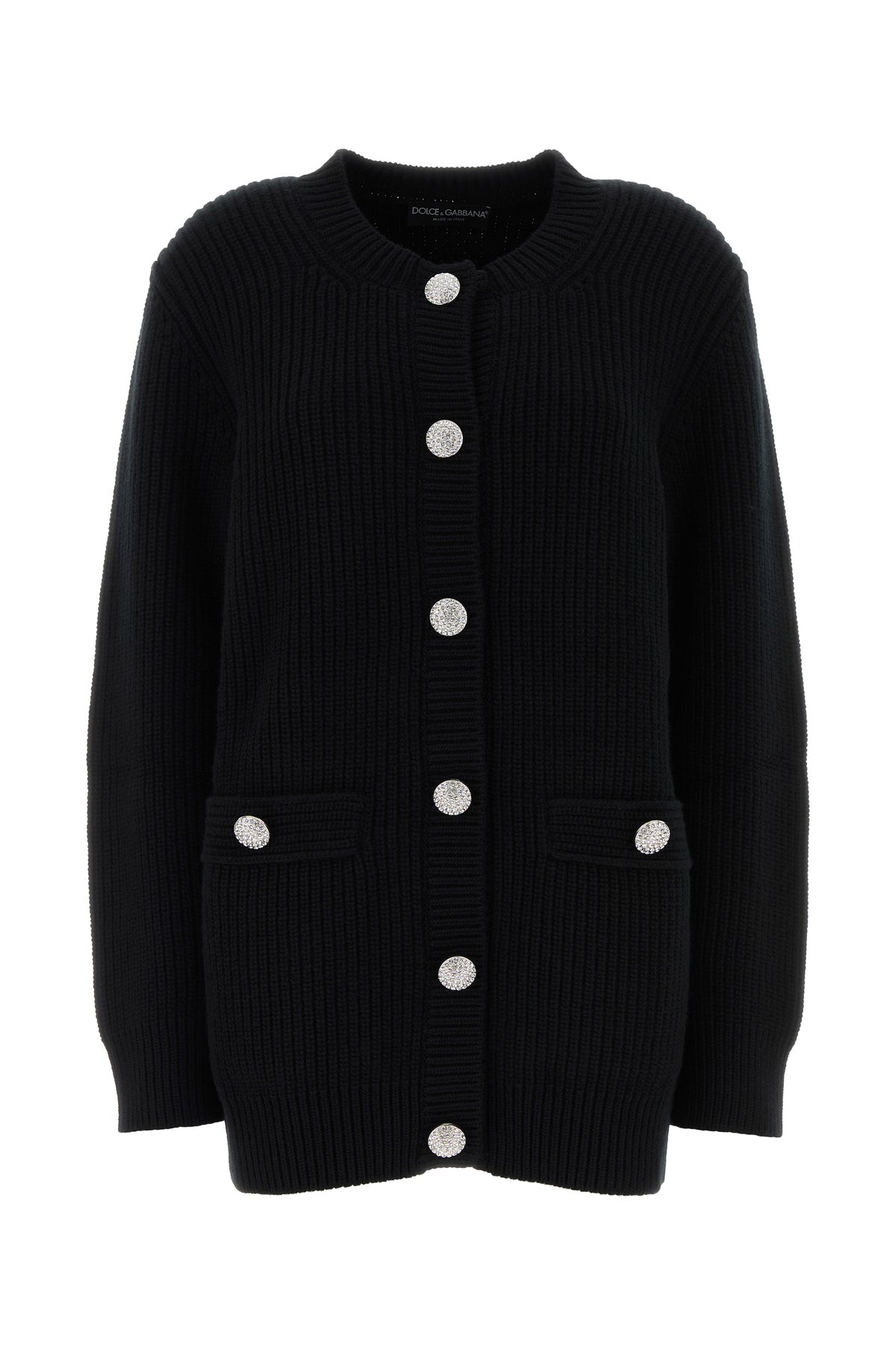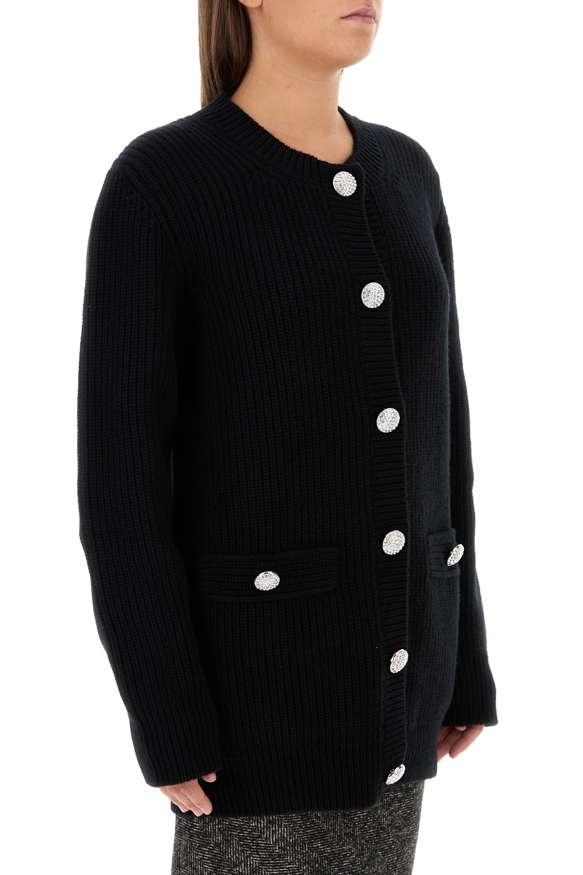Oversize cardigan realized in pure virgin wool characterized by jewel buttons closure.