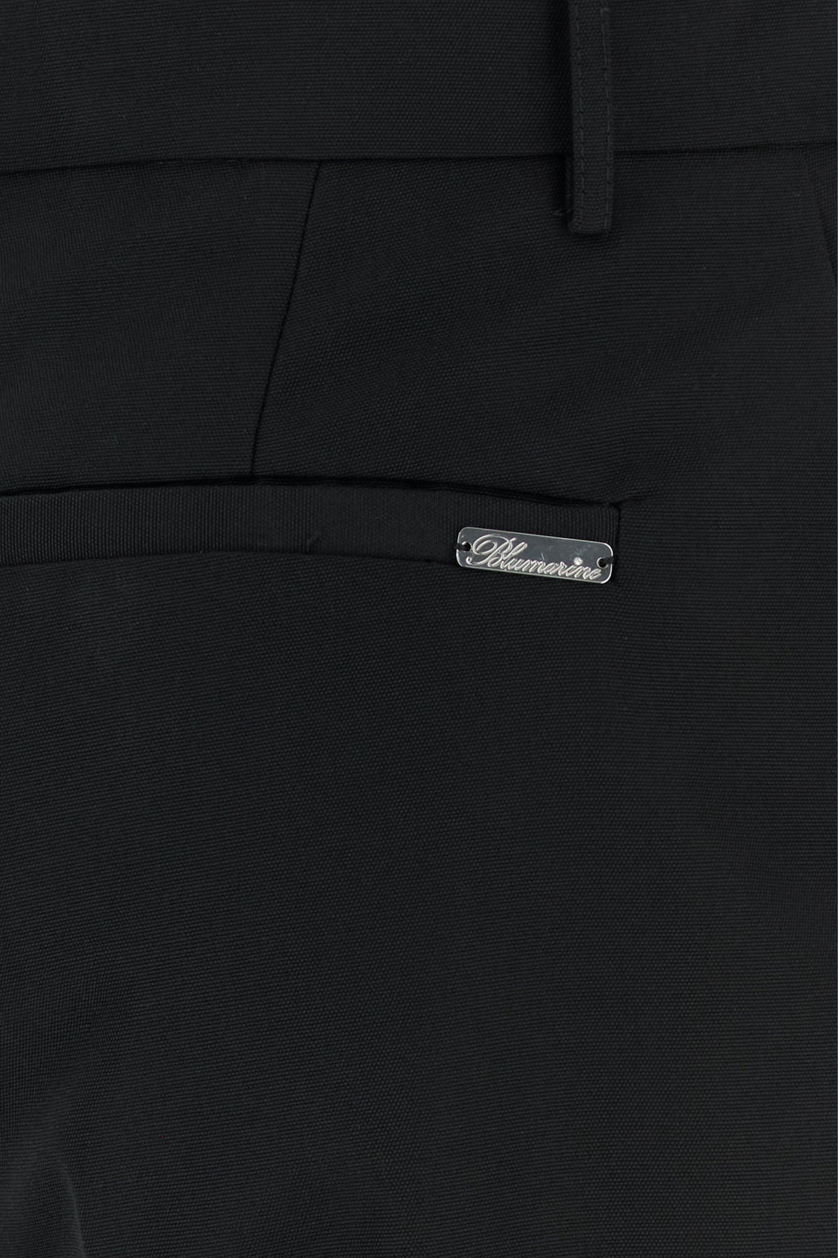 Pant realized in pure virgin wool enriched by metal logoed plate at the back.