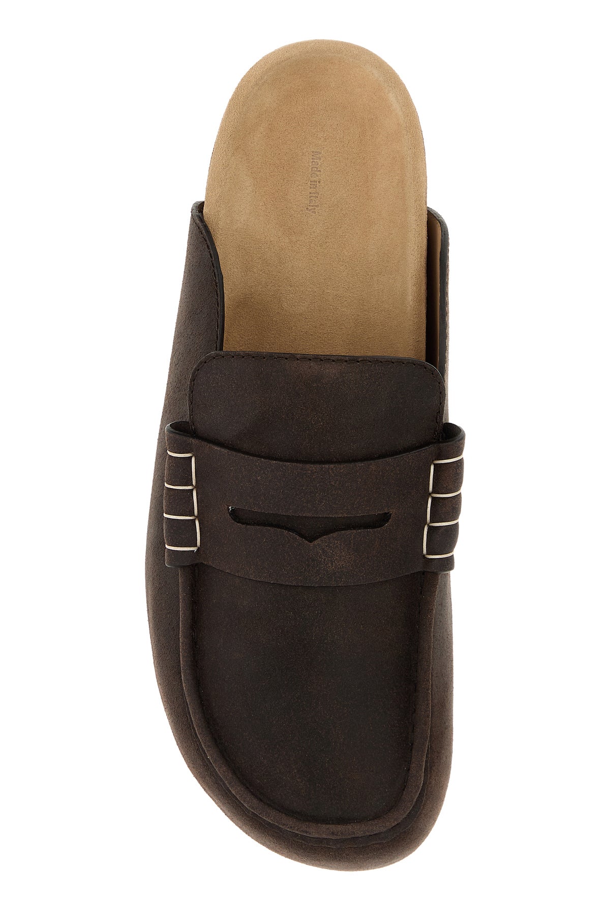 Slippers realized in vintage effect calf leather enriched by vamp.