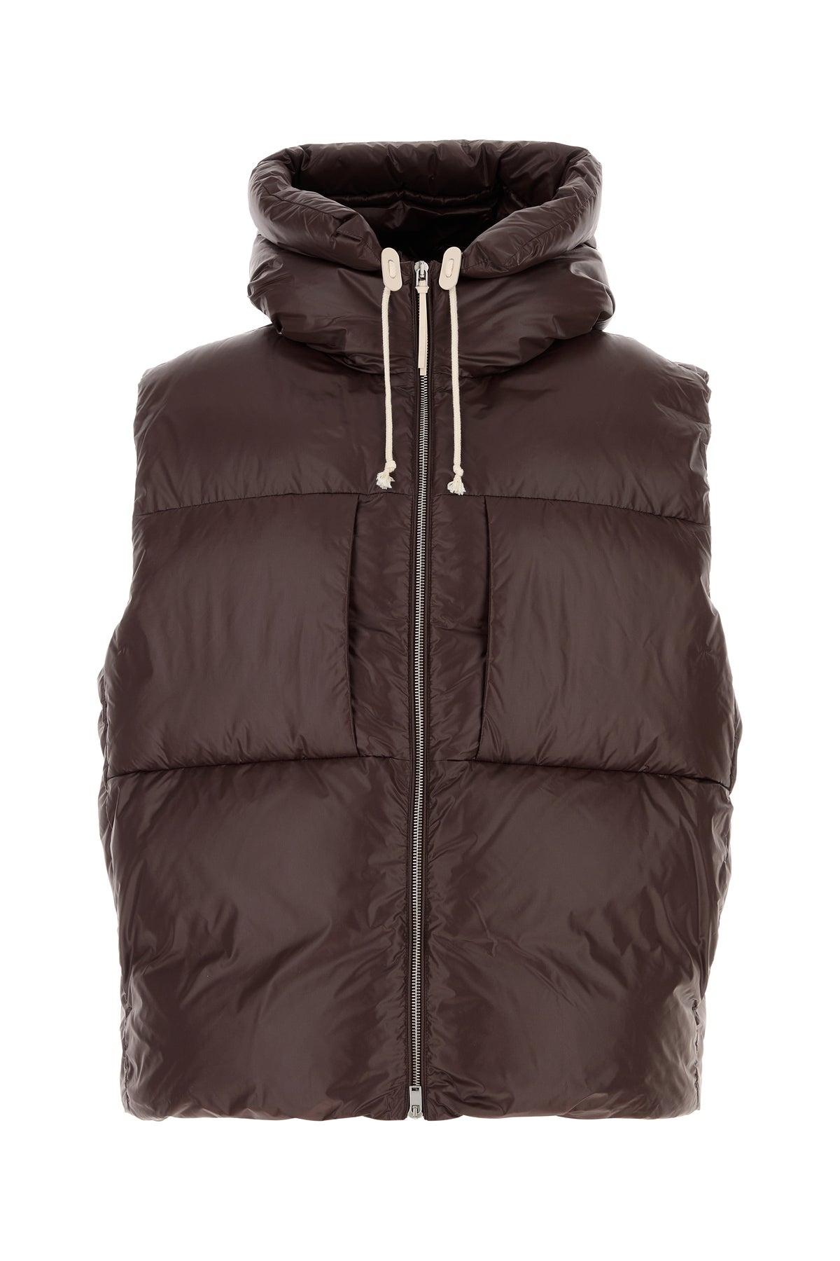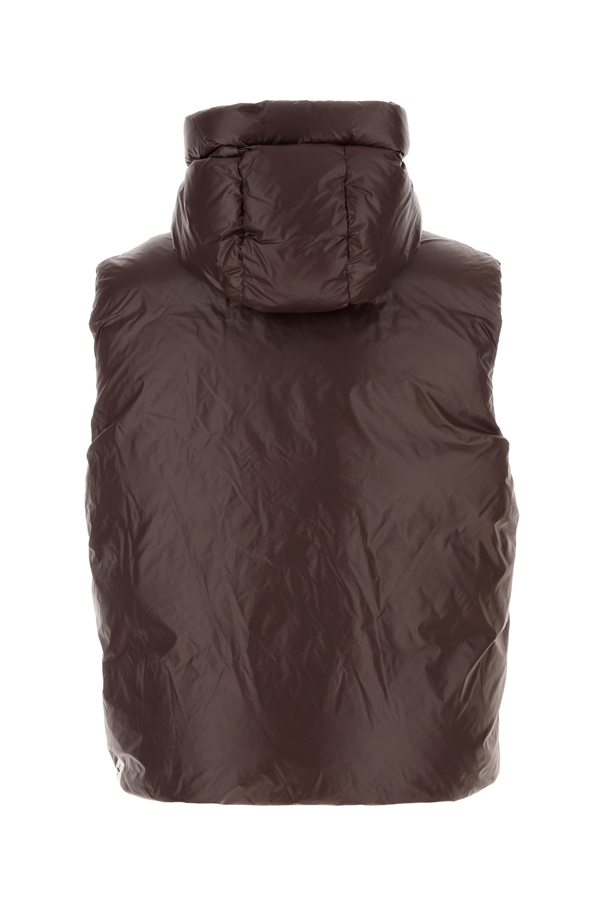 Brown nylon sleeveless down jacket