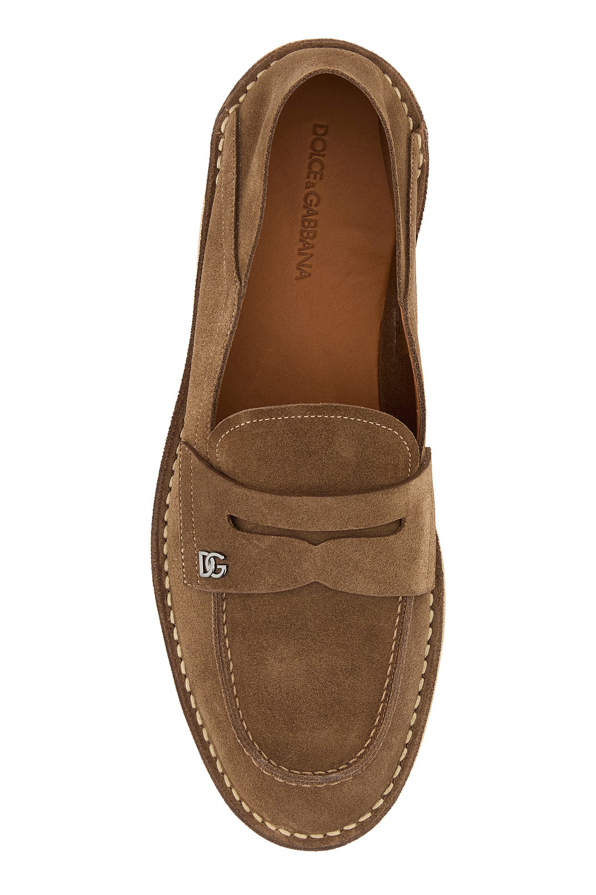 Loafers realized in suede enriched by DG metal detail on the vamp.