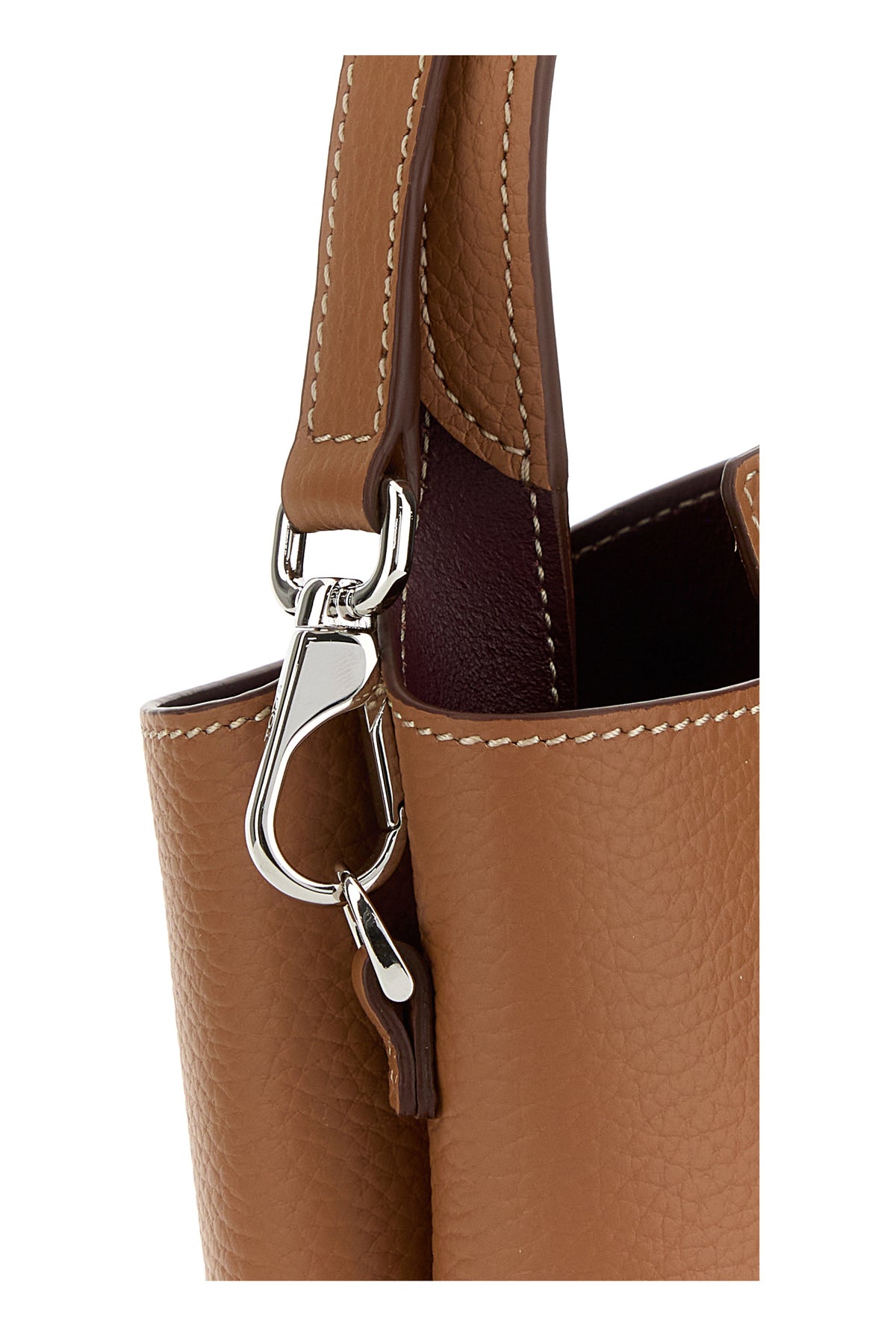 Handbag realized in pebble leather characterized by embossed logo at the front enriched by detachable logoed patch with metal T Timeless detail.