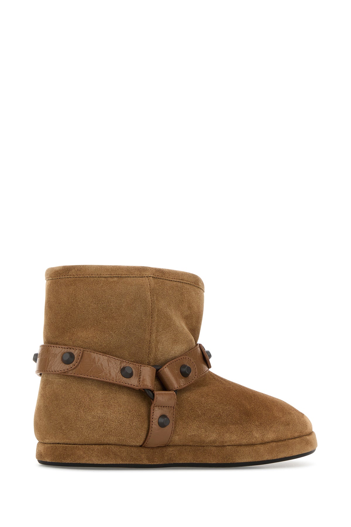 Ankle boots realized in calf suede enriched by strap with studs on the instep.