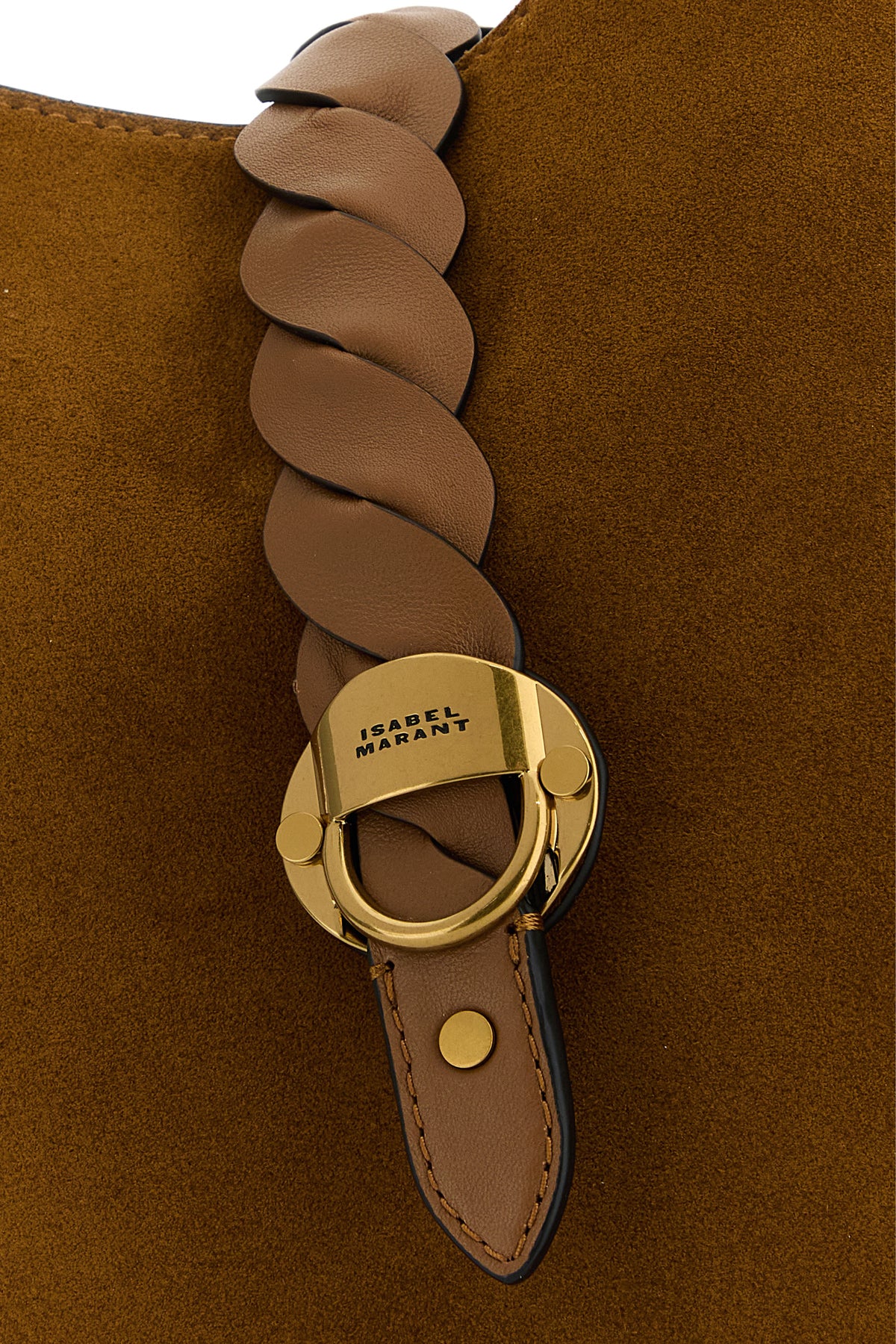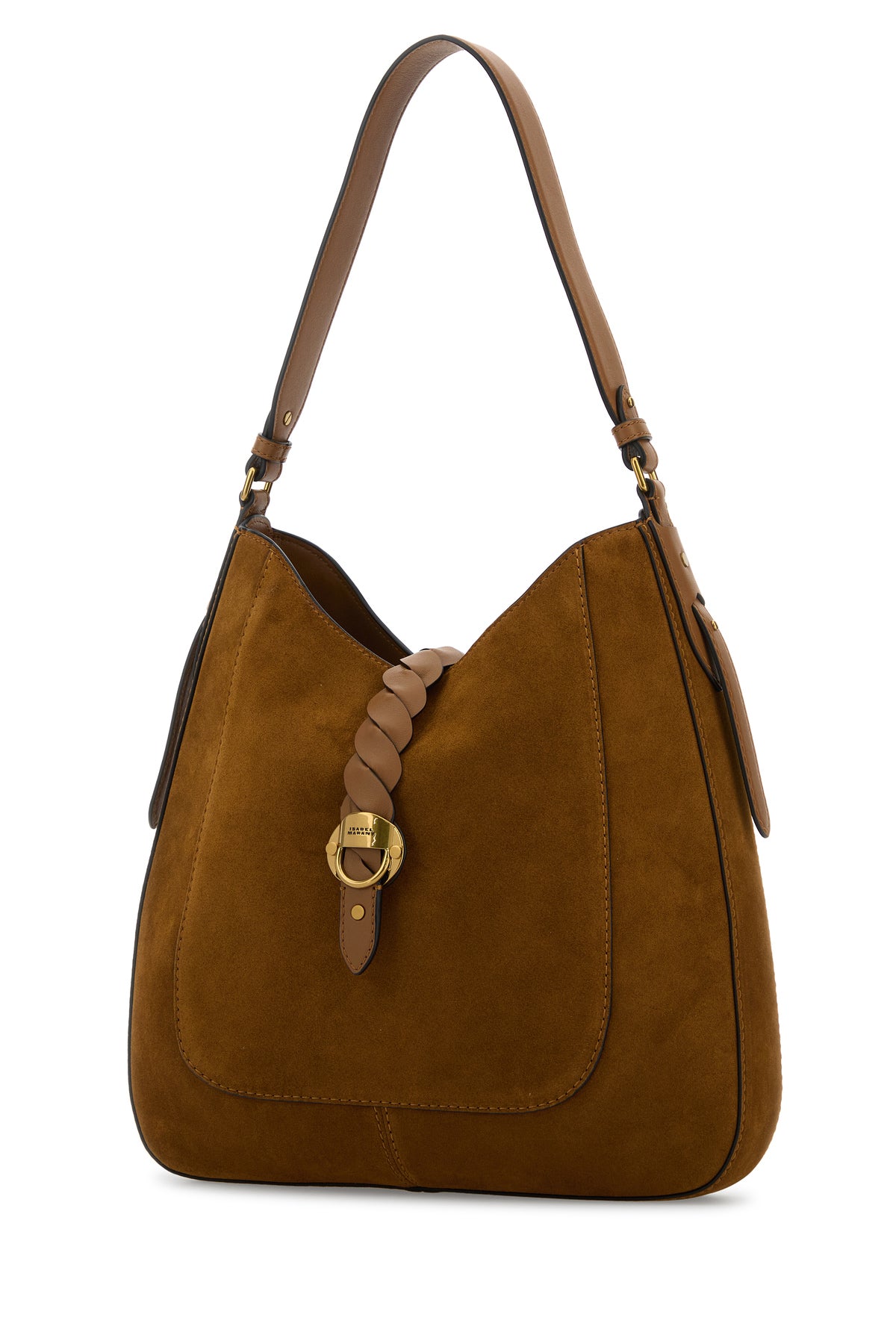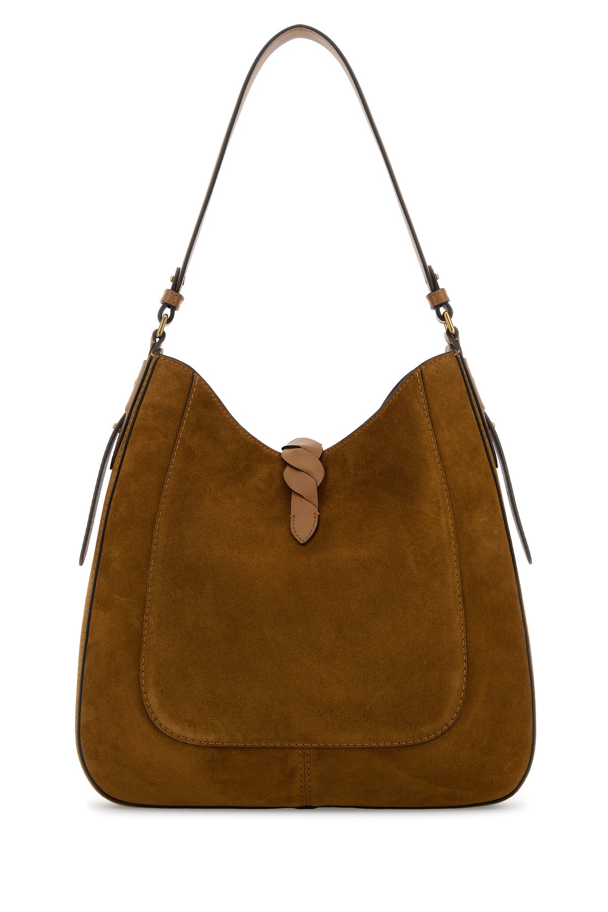 Shopping bag realized in suede characterized by embossed logo on the magnetic button closure