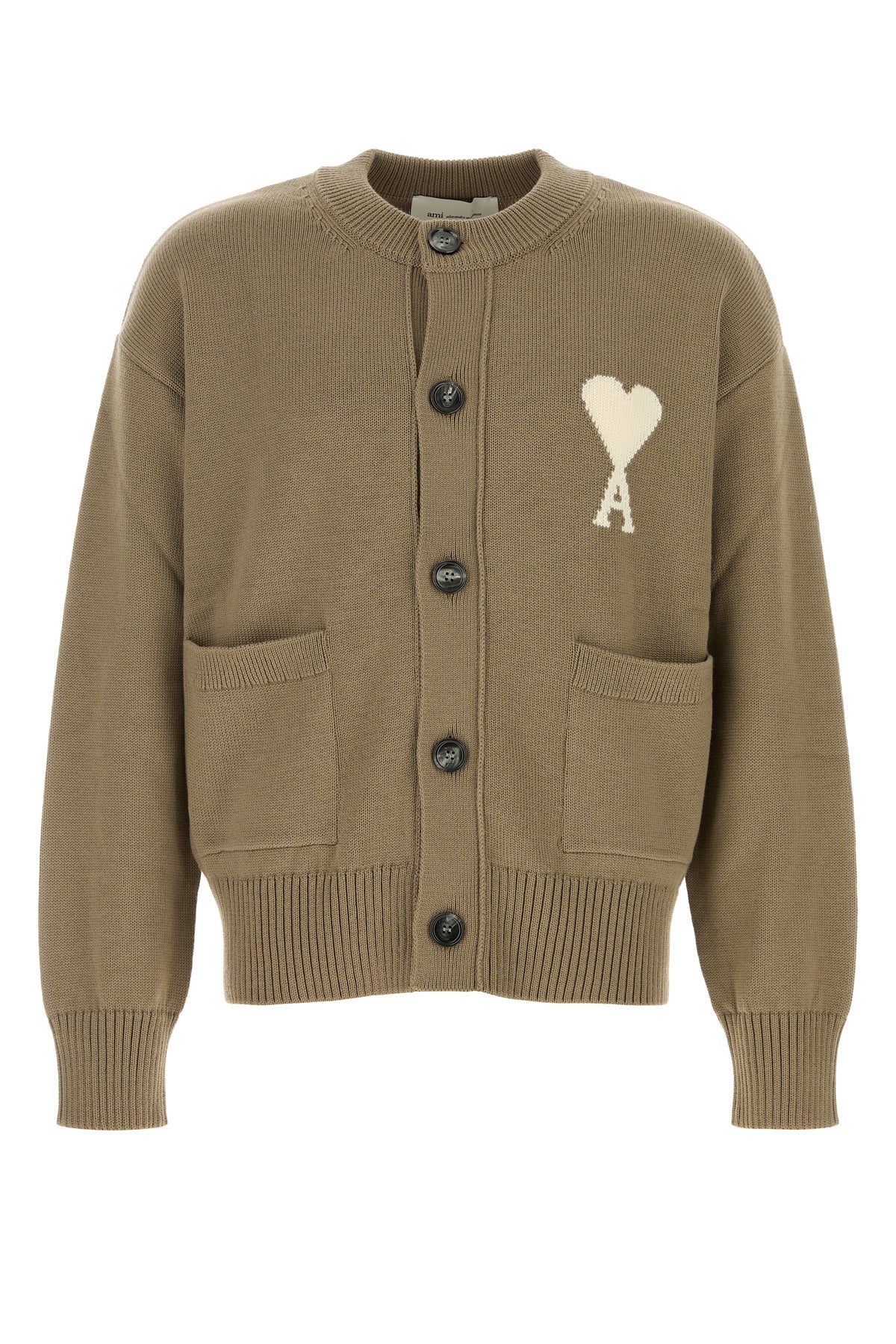 Cardigan realized in virgin wool and cotton characterized by contrasting Ami De Coeur embroidery on the chest.