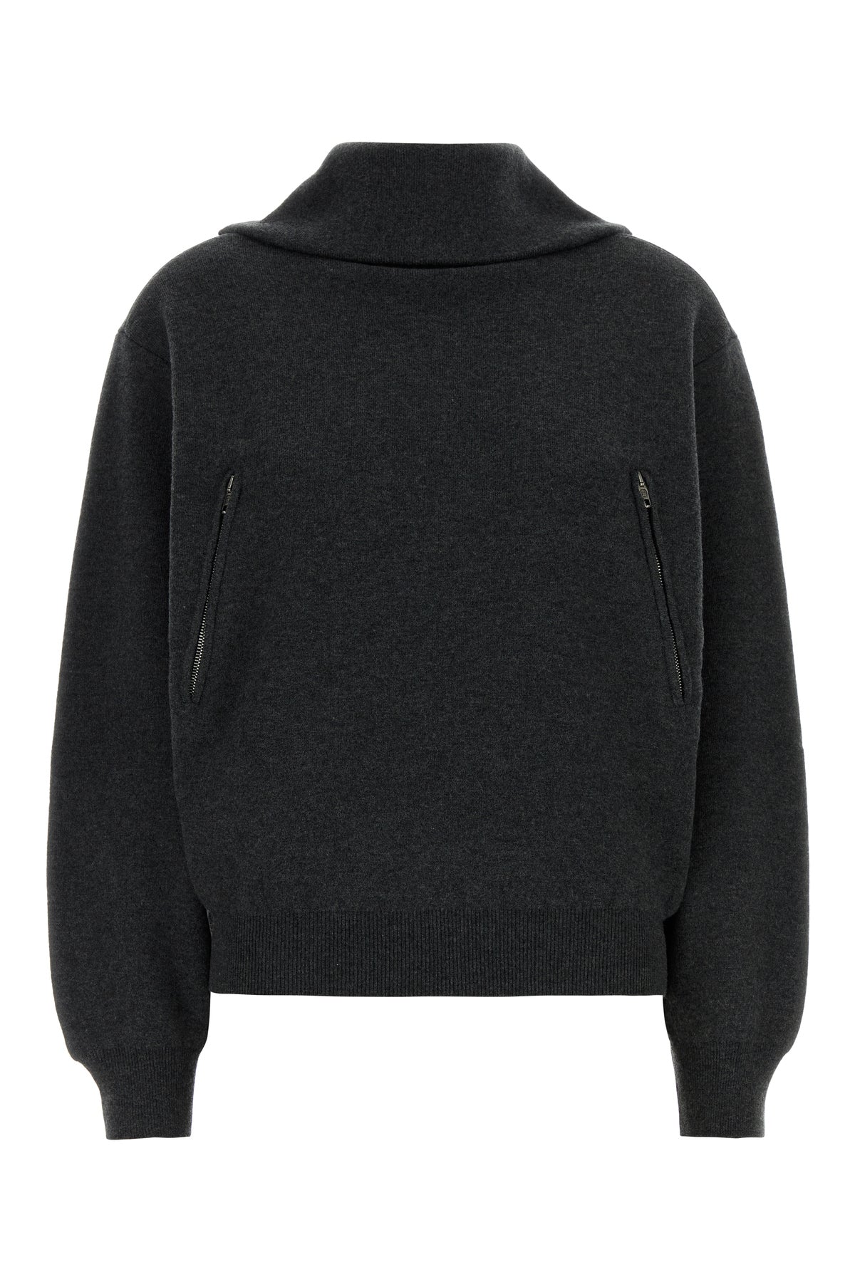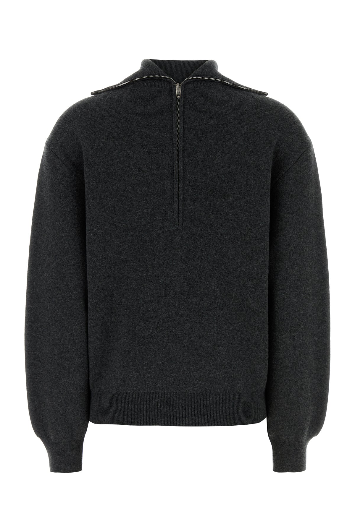 Sweater realized in pure wool characterized by partial closure by zip at the back.