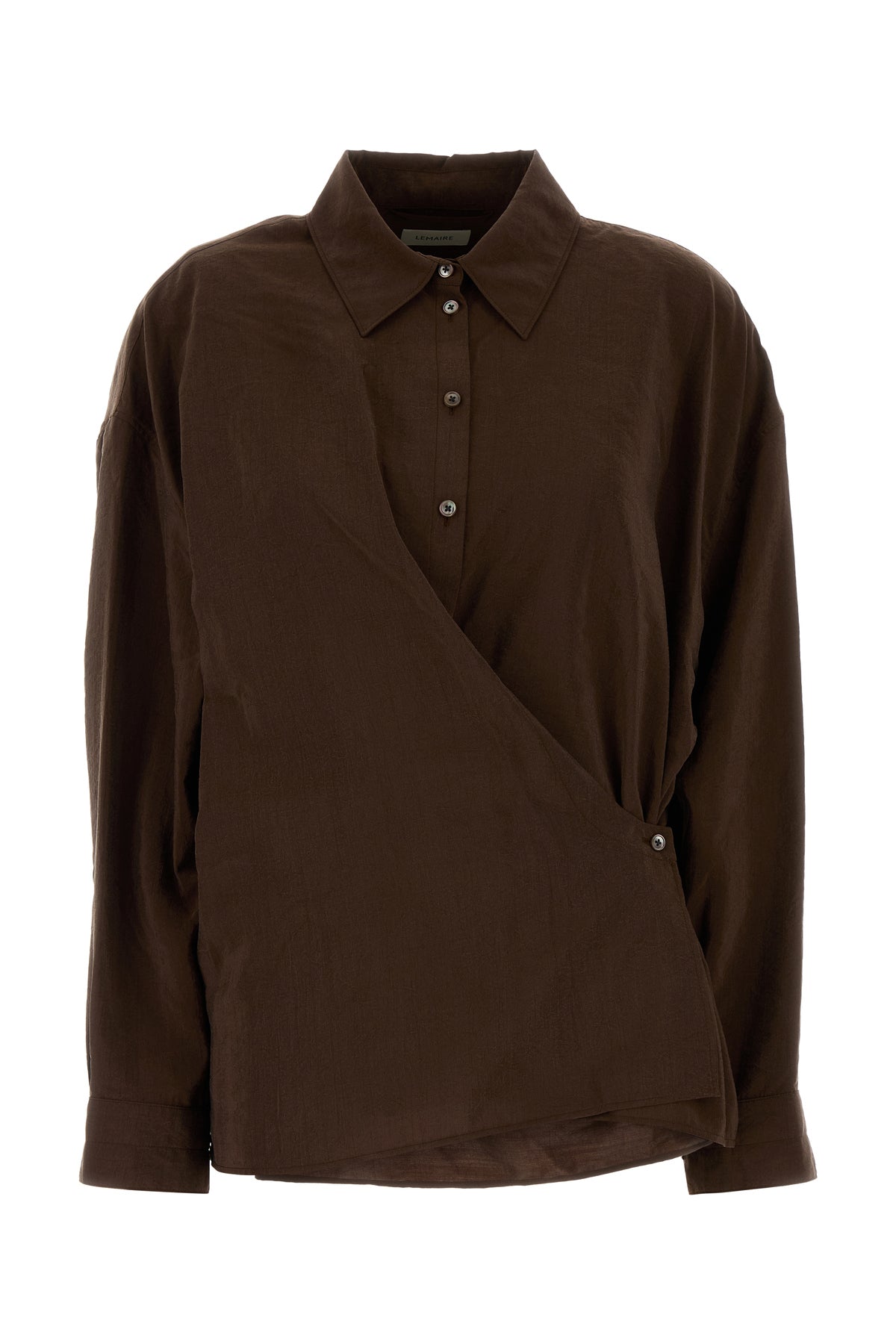 Shirt realized in silk blend characterized by asymmetric buttons closure.