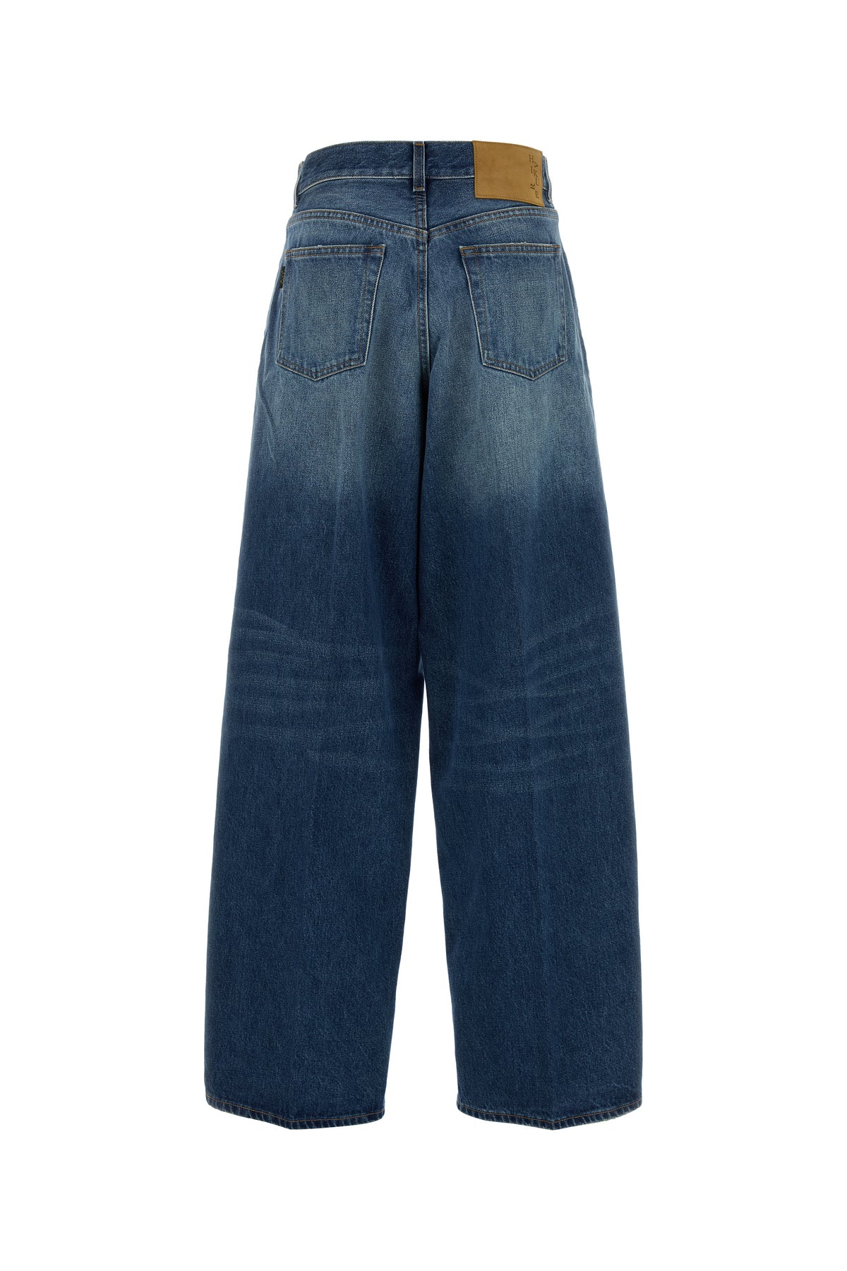 Baggy jeans realized in stonewashed pure cotton denim enriched by logoed label at the back.
