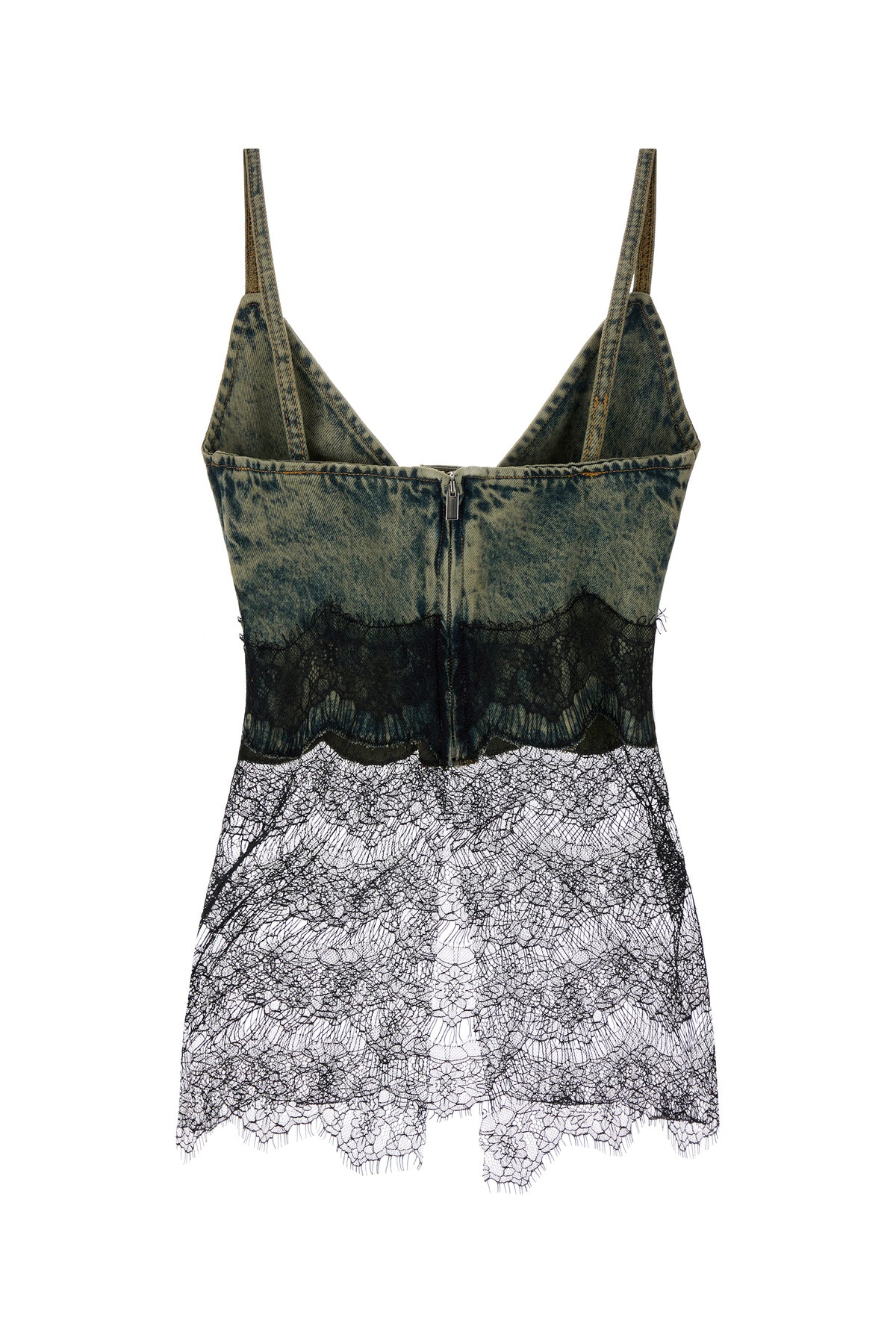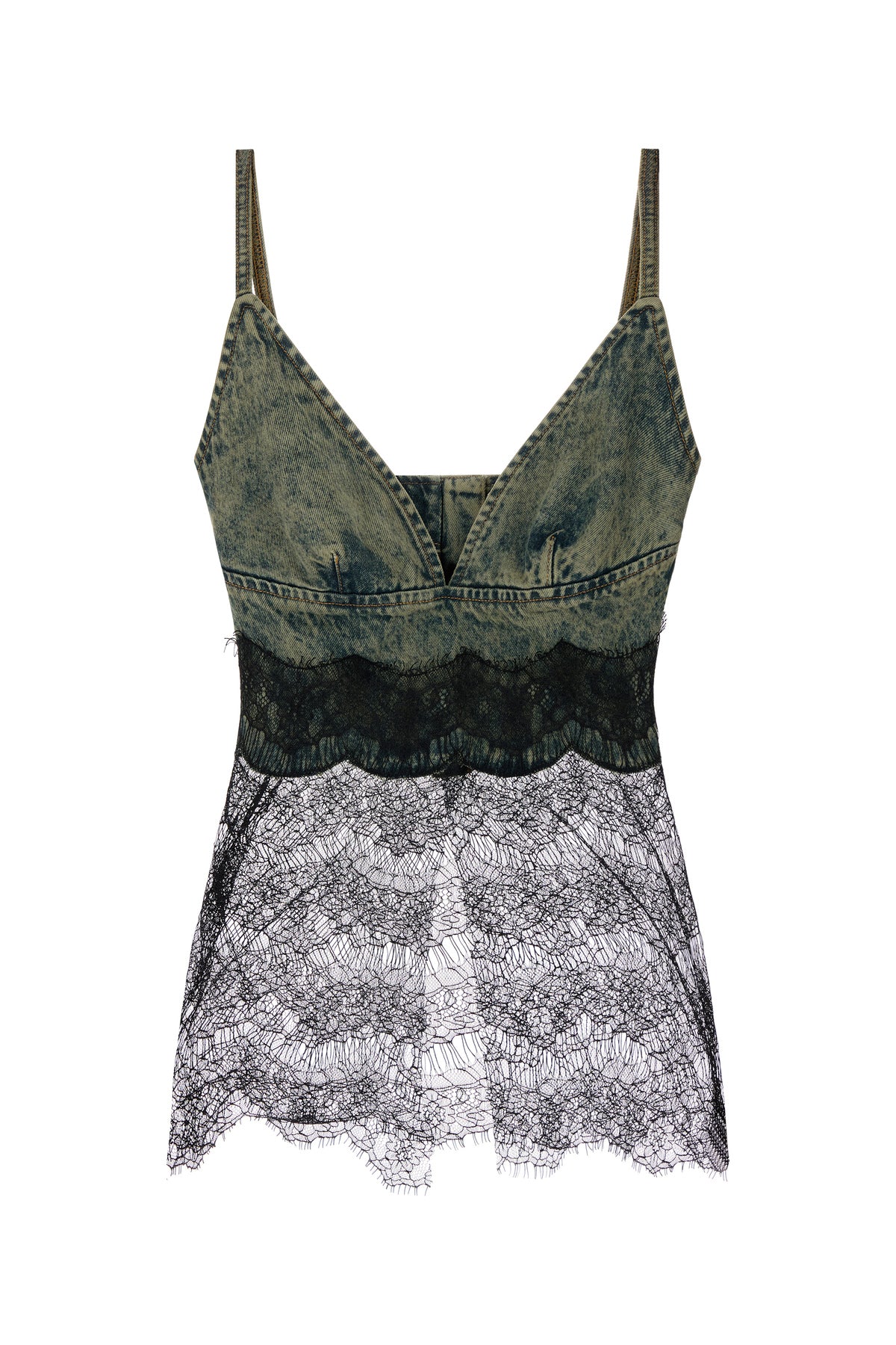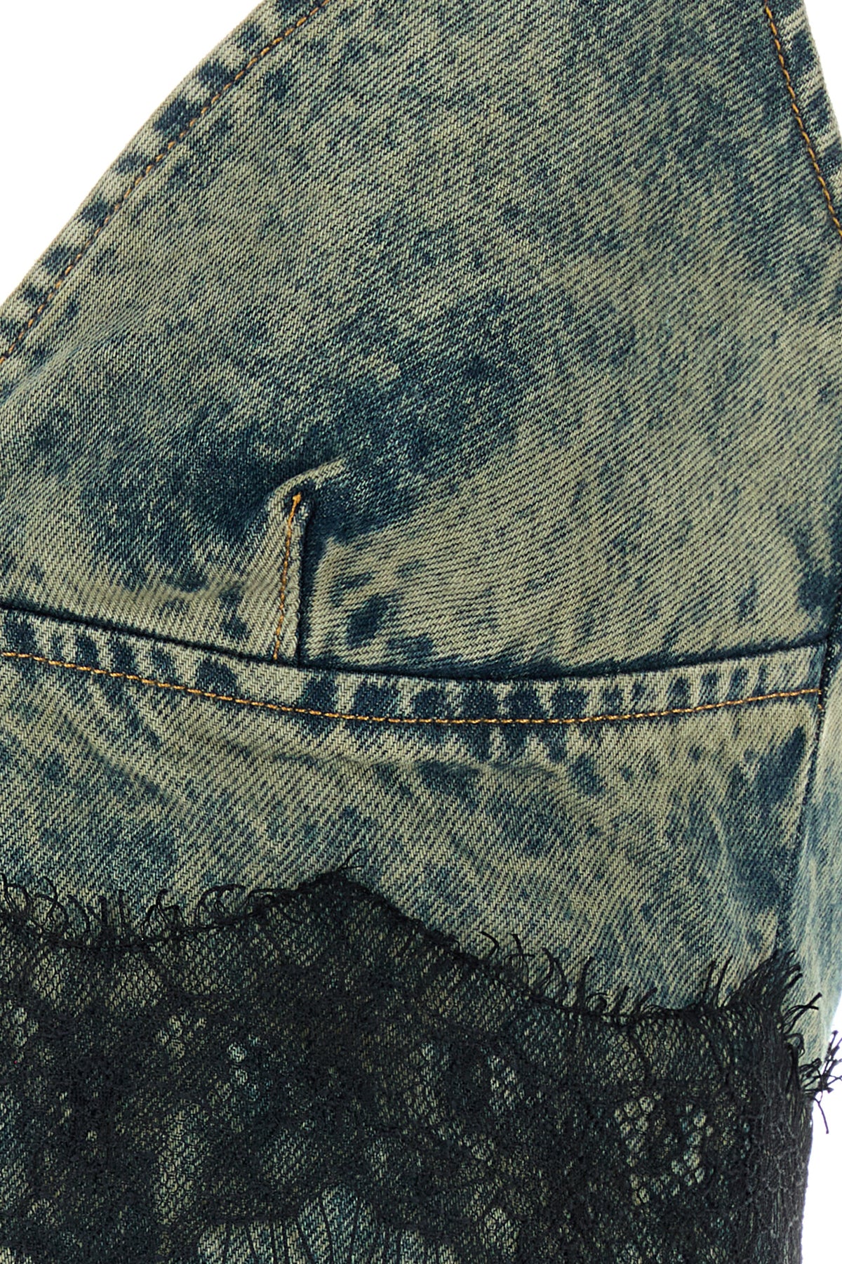 Top realized in stonewashed pure cotton denim with lace insert on the hemline.