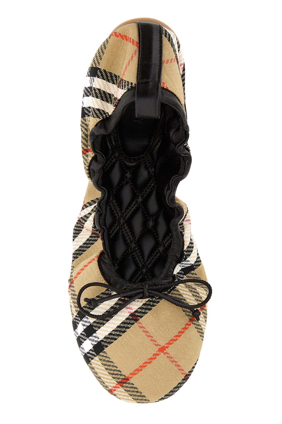Ballerinas realized in fabric characterized by Burberry Check embroidery on the entire surface.