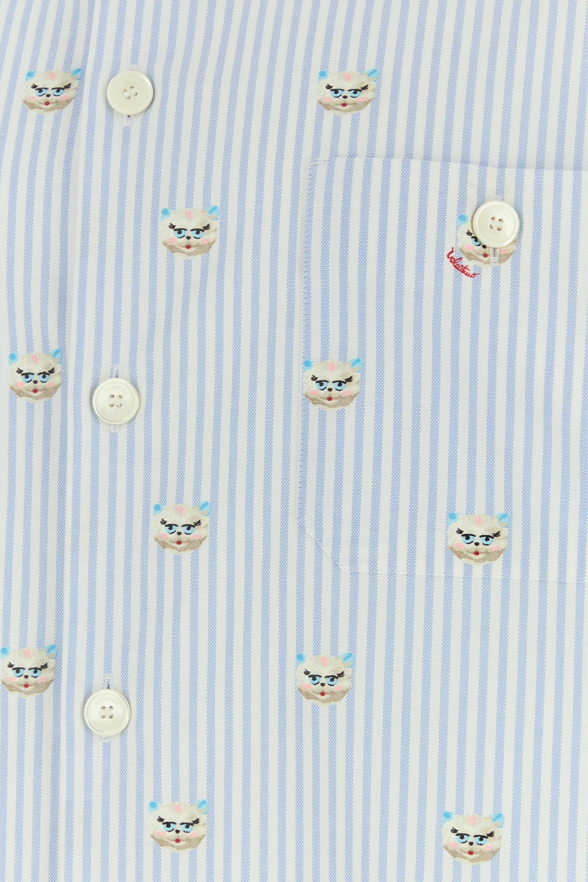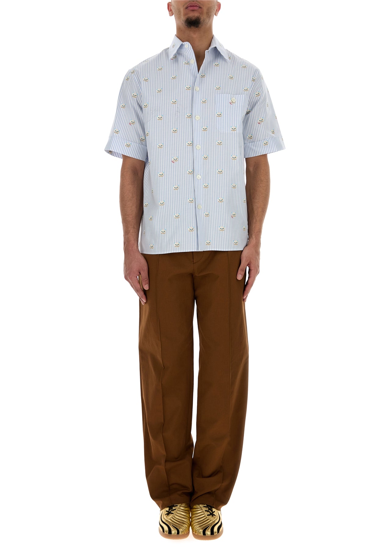 Short-sleeves shirt realized in pure cotto oxford characterized by striped embroidery and Le Chat De La Maison print on the entire surface.