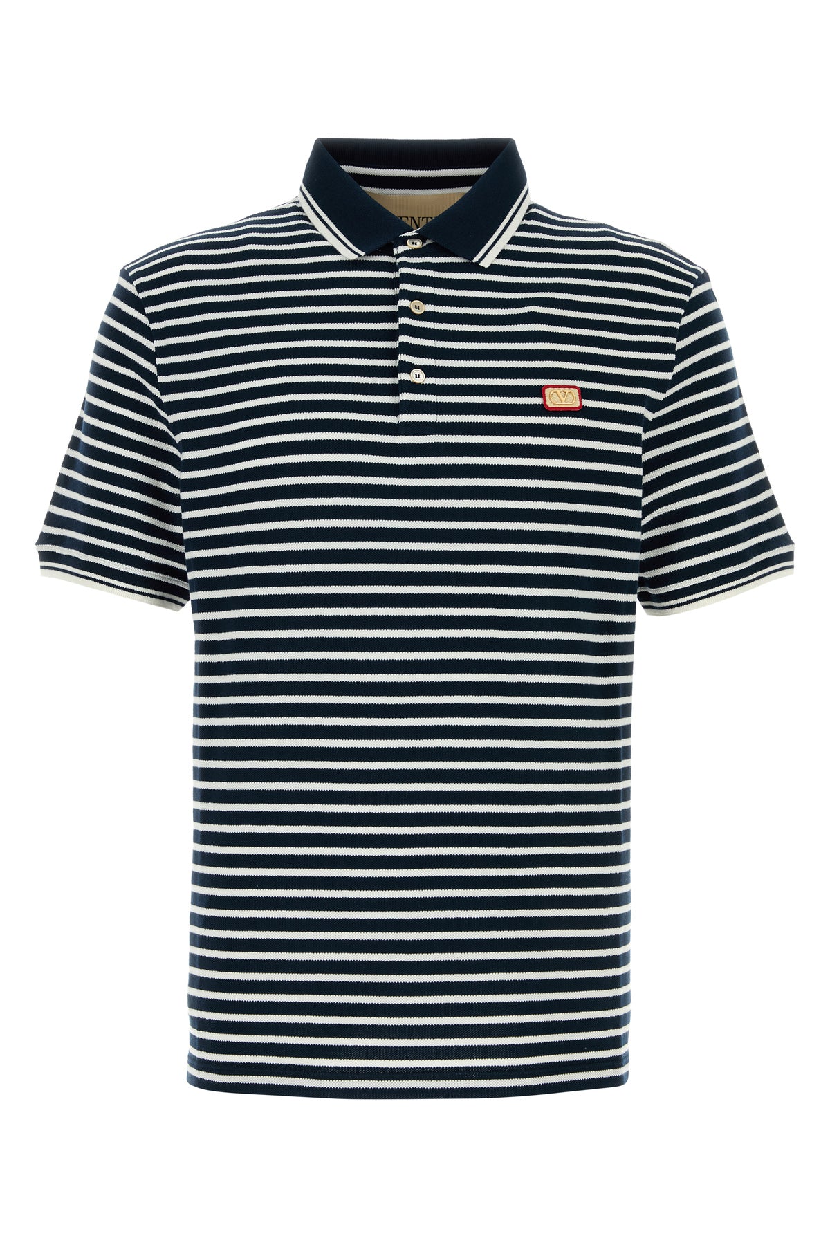 Polo shirt realized in pure cotton piquet characterized by striped embroidery enriched by VLogo Signature patch on the chest.