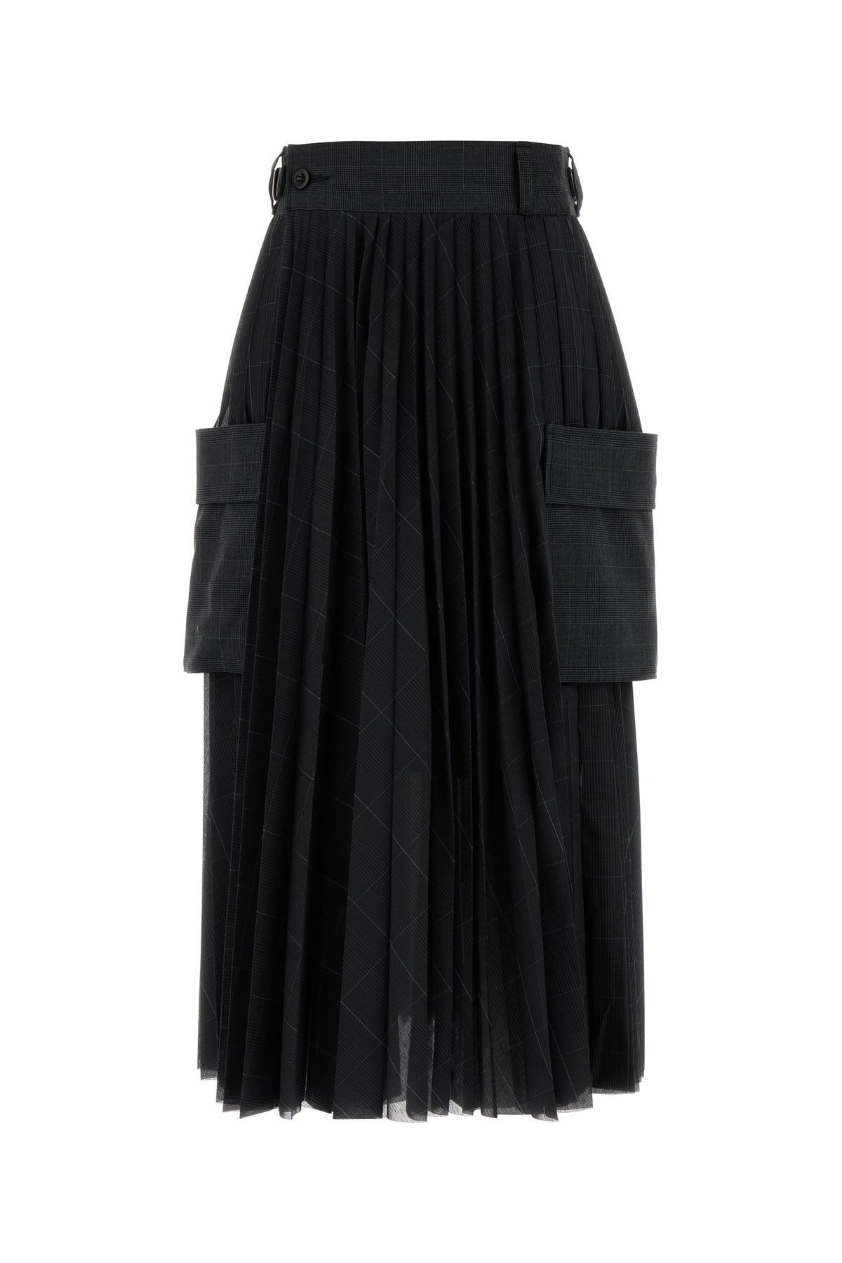 Pleated skirt realized in polyester characterized by checked embroidery on the entire surface.